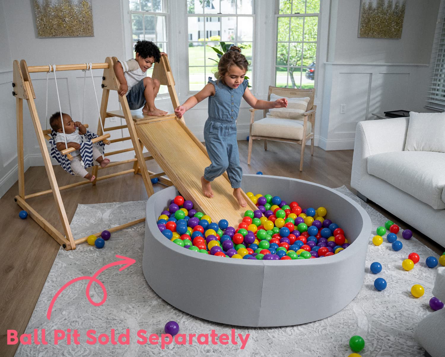 - Compact and Convenient: Designed to be foldable, this indoor wooden playground can be conveniently transported or stored away, making sure that your living spaces can serve multiple purposes. Say goodbye to clutter!