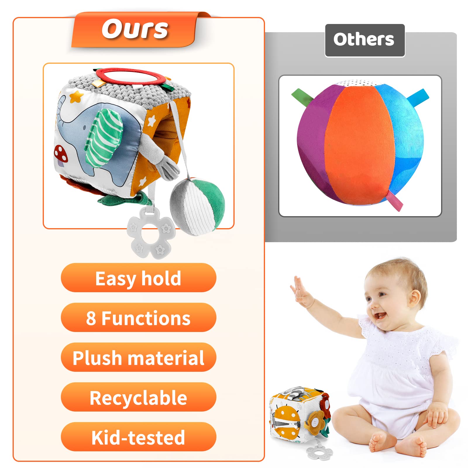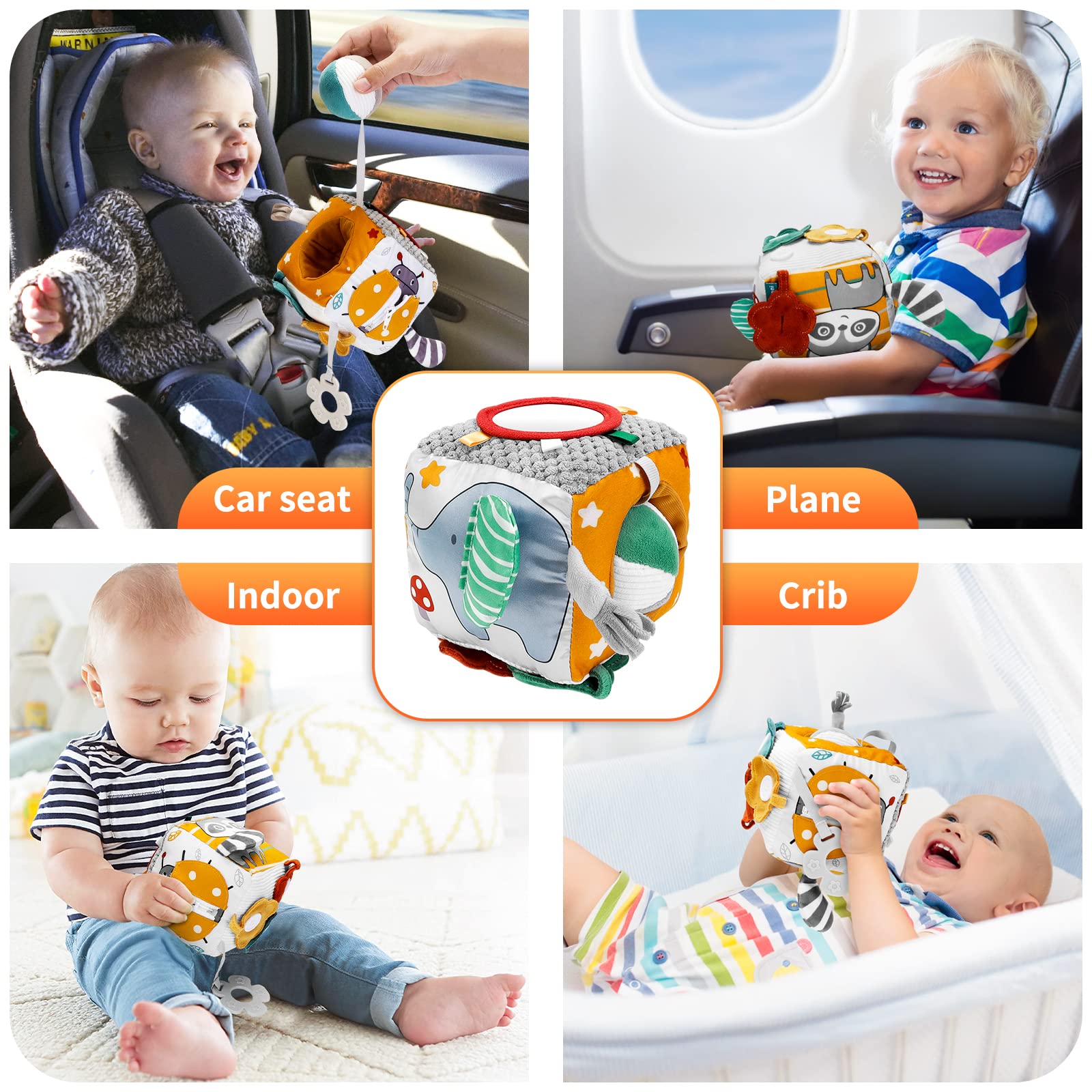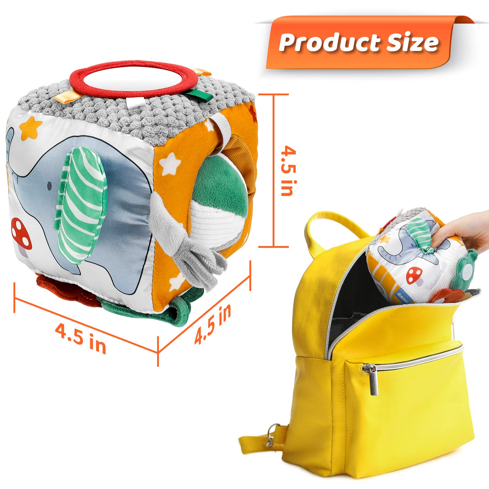 - Perfect Size - Newborn soft educational toy is a perfect size, lightweight, and easy to carry, can help exercise your baby's grasping skills, and measures: 4.5"L x 4.5"W x 4.5"H. it's perfect for shopping carts, grocery stores, doctor's waiting rooms, and as a car, train, plane travel toy, etc