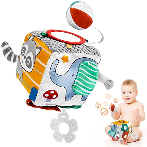 - Learning Cube Toys - The Baby cube toy has hands-on developmental activities on six sides, including crinkle, rattles, squeaks, textured teething rings, zippers, petal button, baby safety mirrors, etc. It can meet all stages from babies 0-6 months to toddlers 1-3