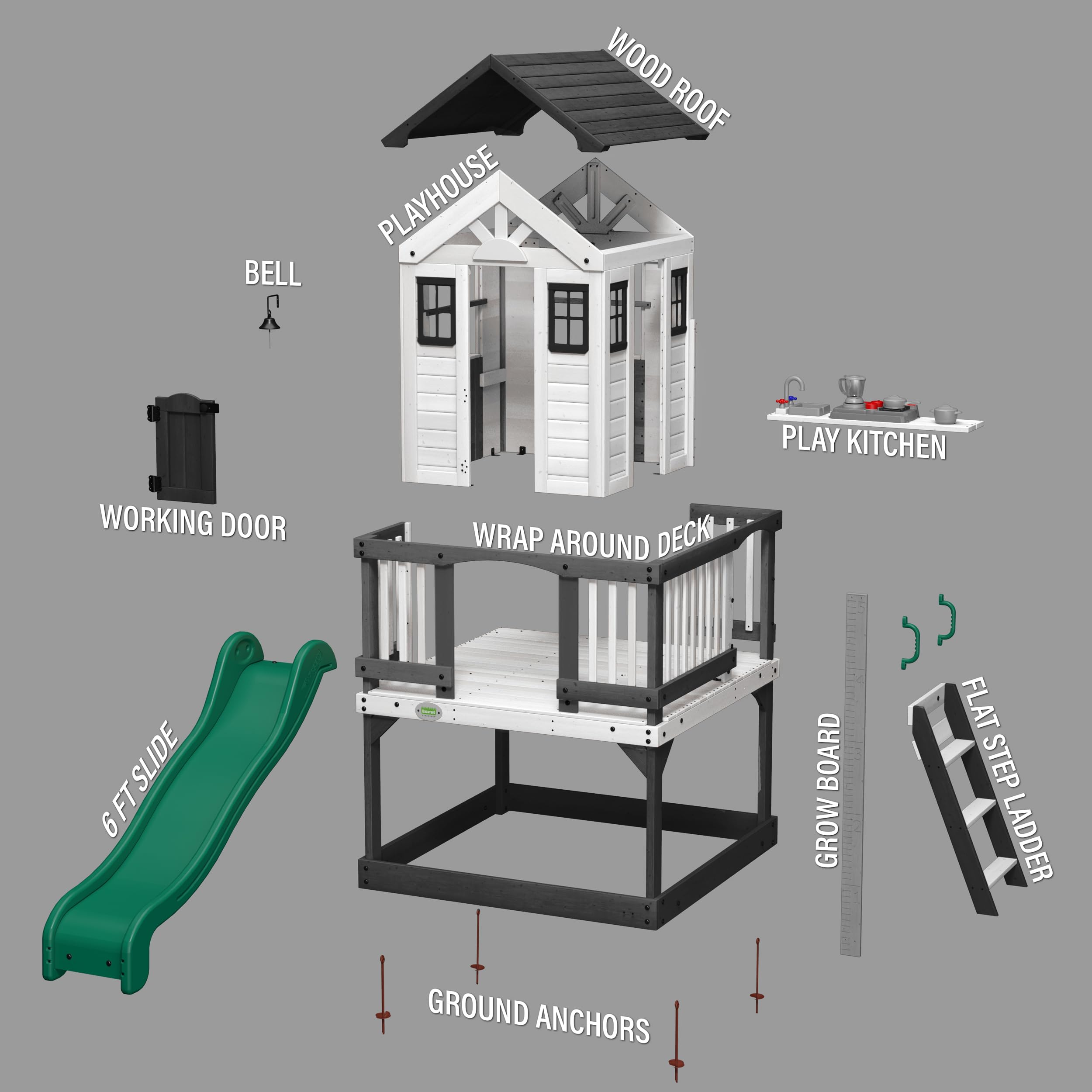 - Elevated Play: Raised playhouse to accommodate compact spaces.