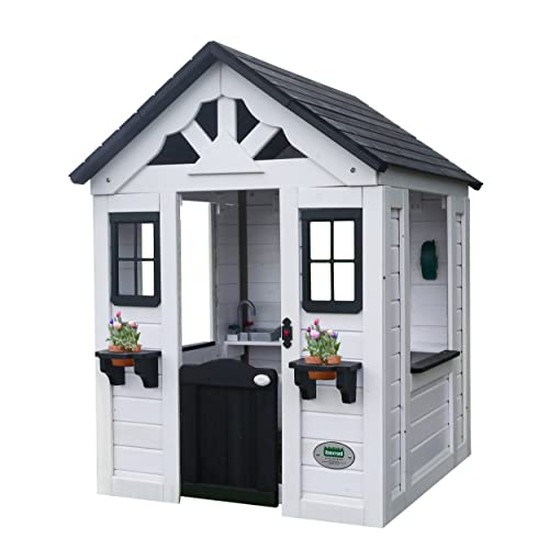 - COZY COTTAGE: Showcasing a country half front door, country style details in the design of the playhouse. The Sweetwater includes custom style flower pots on each side of the front door, kitchen with pots, pans, sink, phone, and a working doorbell.