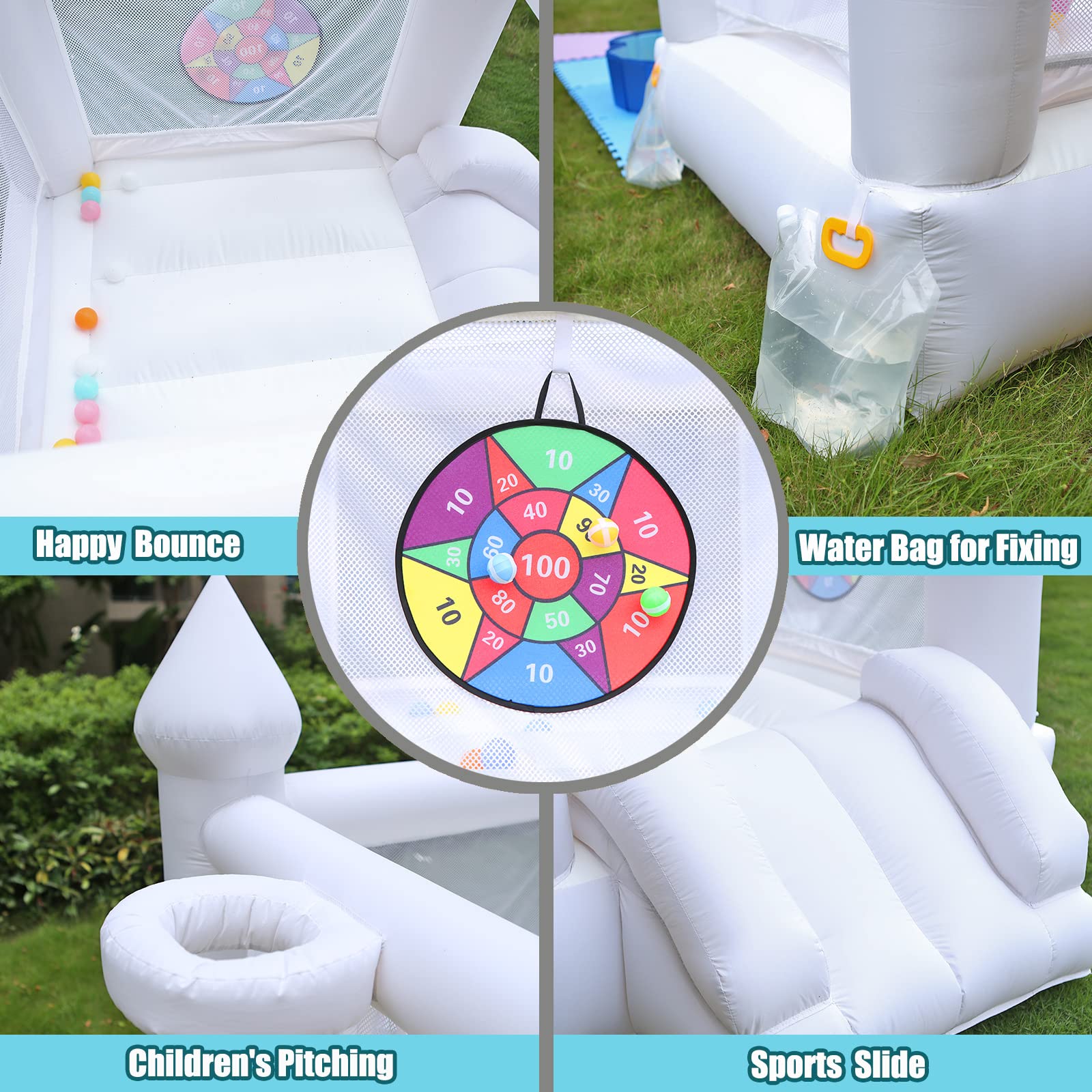 - u3010Quantityu3011Bounce House*1,Bounce House Tote Bag*1,Powerful Blower*1,Inflatable balloon set*1,Plastic Floor Nails*6,Dartboard*1,Water bag*4