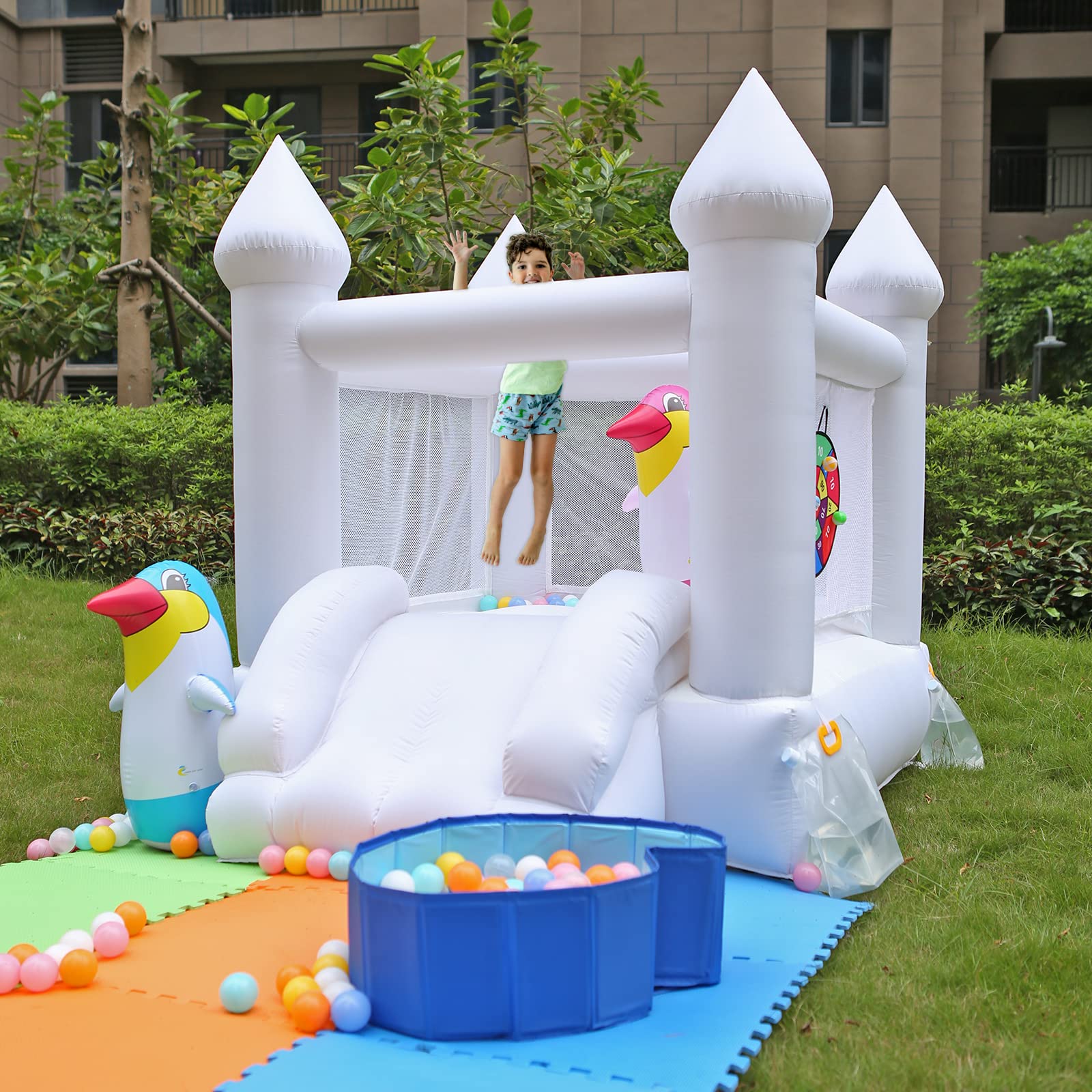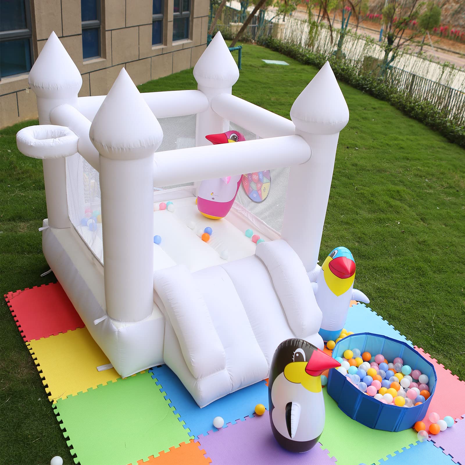 - u3010Materialu3011Bounce House for kids is Made of High-Grade Oxford Cloth and PVC, Non-toxic and BPA free,Security Test Passed.and the Double Seam Process Makes the Product More Durable. Kids Bounce House with Breathable Mesh walls for a Comfortable and Enjoyable Place to Play. Water bag after water injection,it can be used to reinforce and stabilize inflatable.