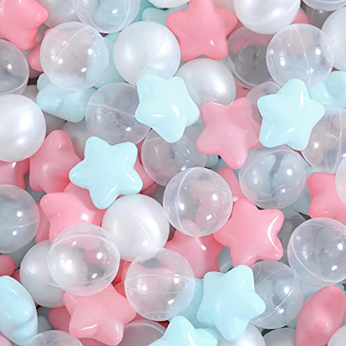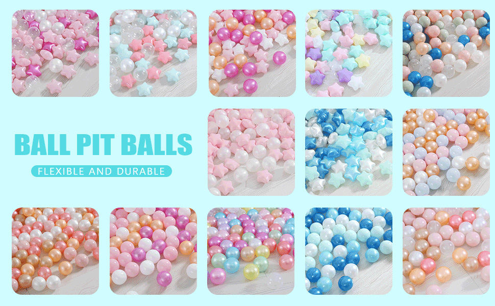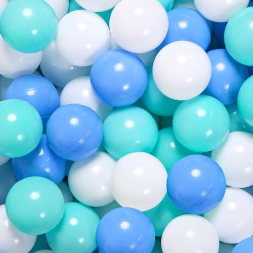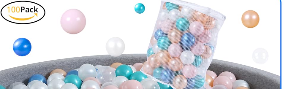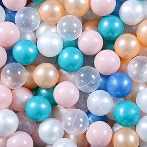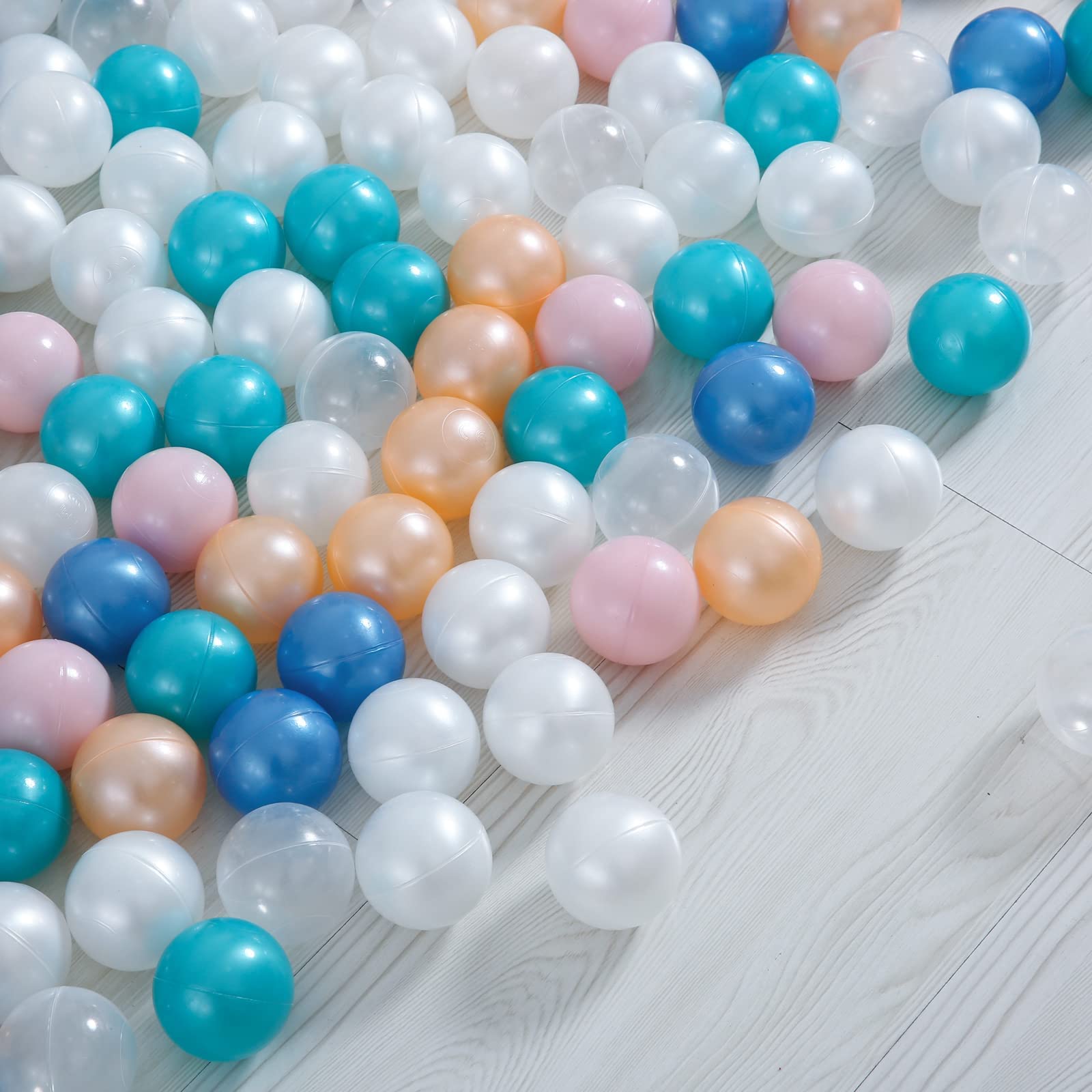 - u2765u3010MULTIPLE COLORS u3011 4 colors without distortion, mild colors do not hurt baby's eyes. There are 4 kinds of colors for you choice (Pearl Blue+ Pearl Baby Blue+Pearl White+Mint Green ), let the baby come into contact with the pure color. Great for refilling ball pits, play tents, playhouses, kiddie pools, playpen and bounce house.it can practise grasping, holding, pinching, throwing, even shooting a basket in the pool. Using imagination to shape different patterns and letters.