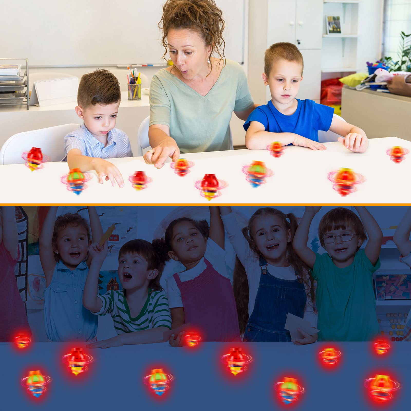- u3010Good choice for childrenu2018s Giftu3011Our product contains more than 20 spinning tops in different colors, which are very suitable for children to play together. As a teacher of children, you can use these toys as a reward to motivate children's learning. You can also use it as a birthday present, organize children to have a children's party, Let them race whose top spins longer!