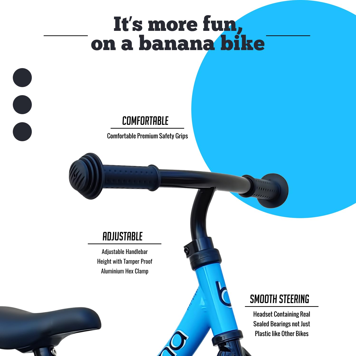 - SAFE AND STABLE - The balance bike is designed with safety in mind. The critical balance bike components are assembled with high-quality materials to ensure stability and durability.