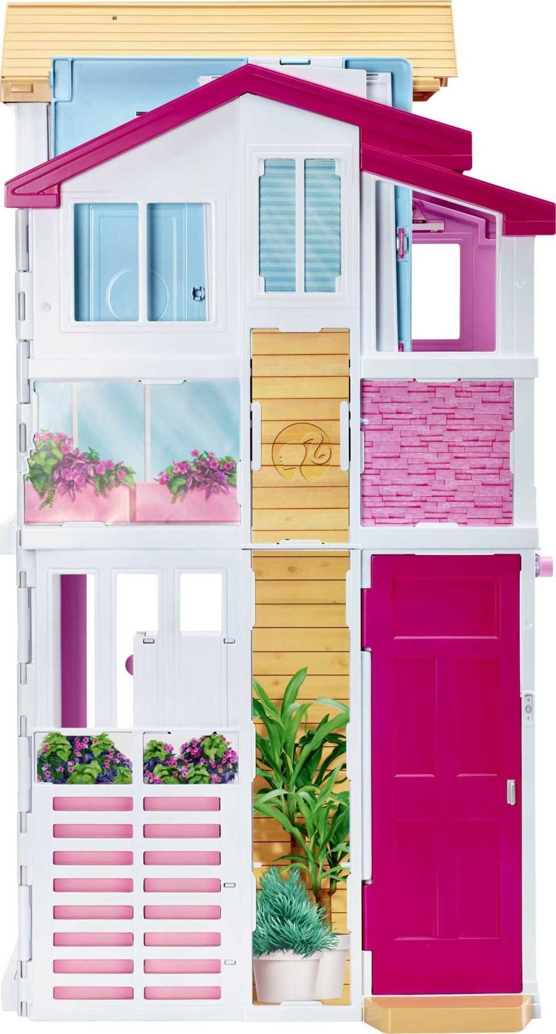 - Three deluxe stories of play space make this Barbie townhouse home to all kinds of storytelling fun!