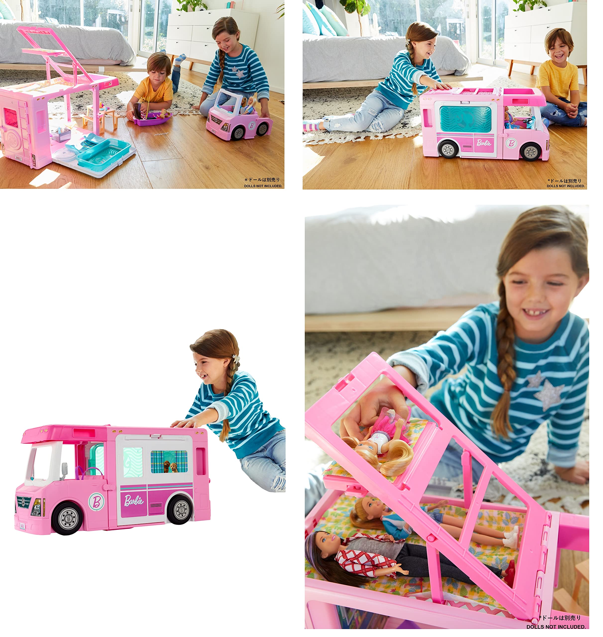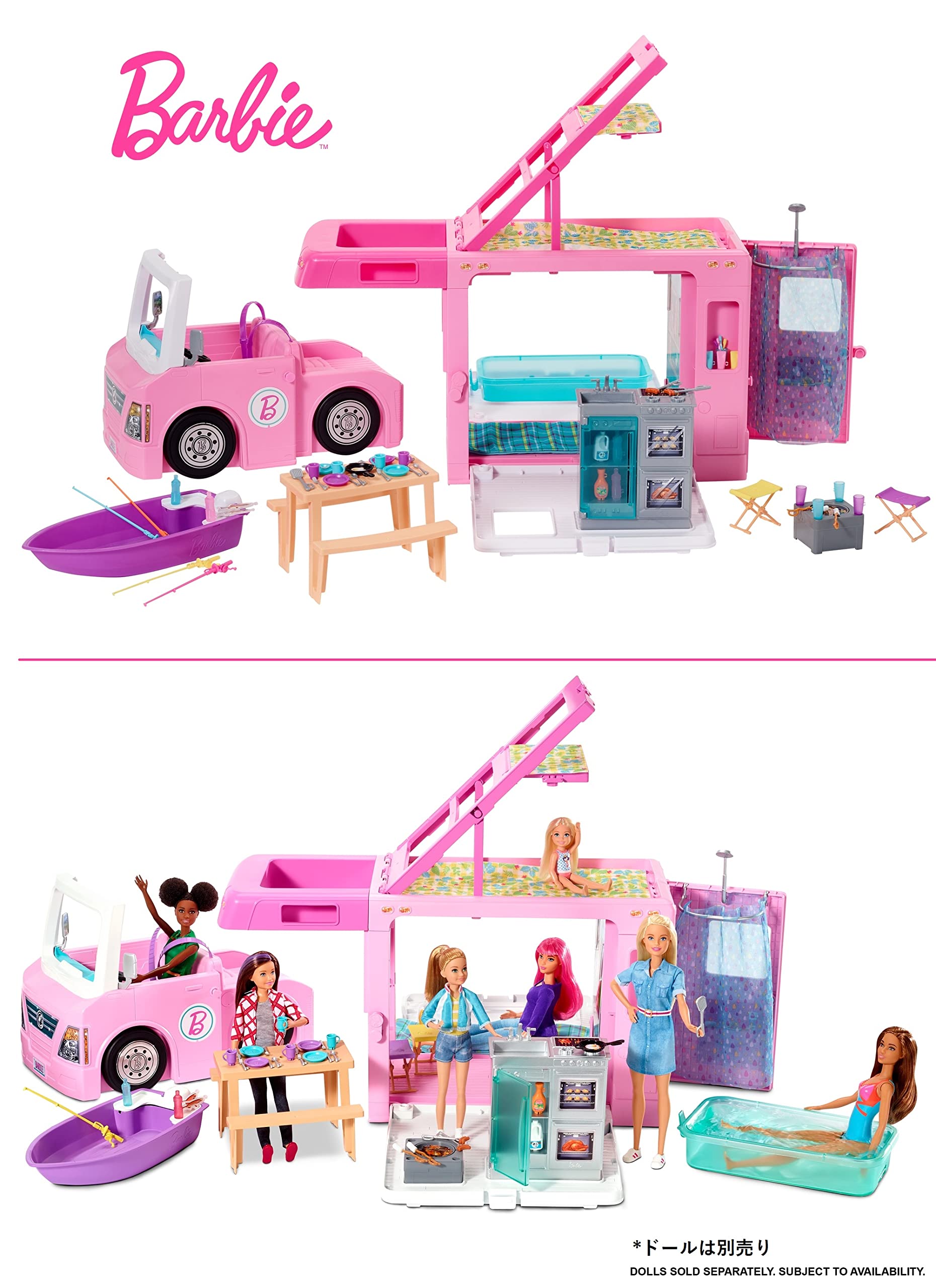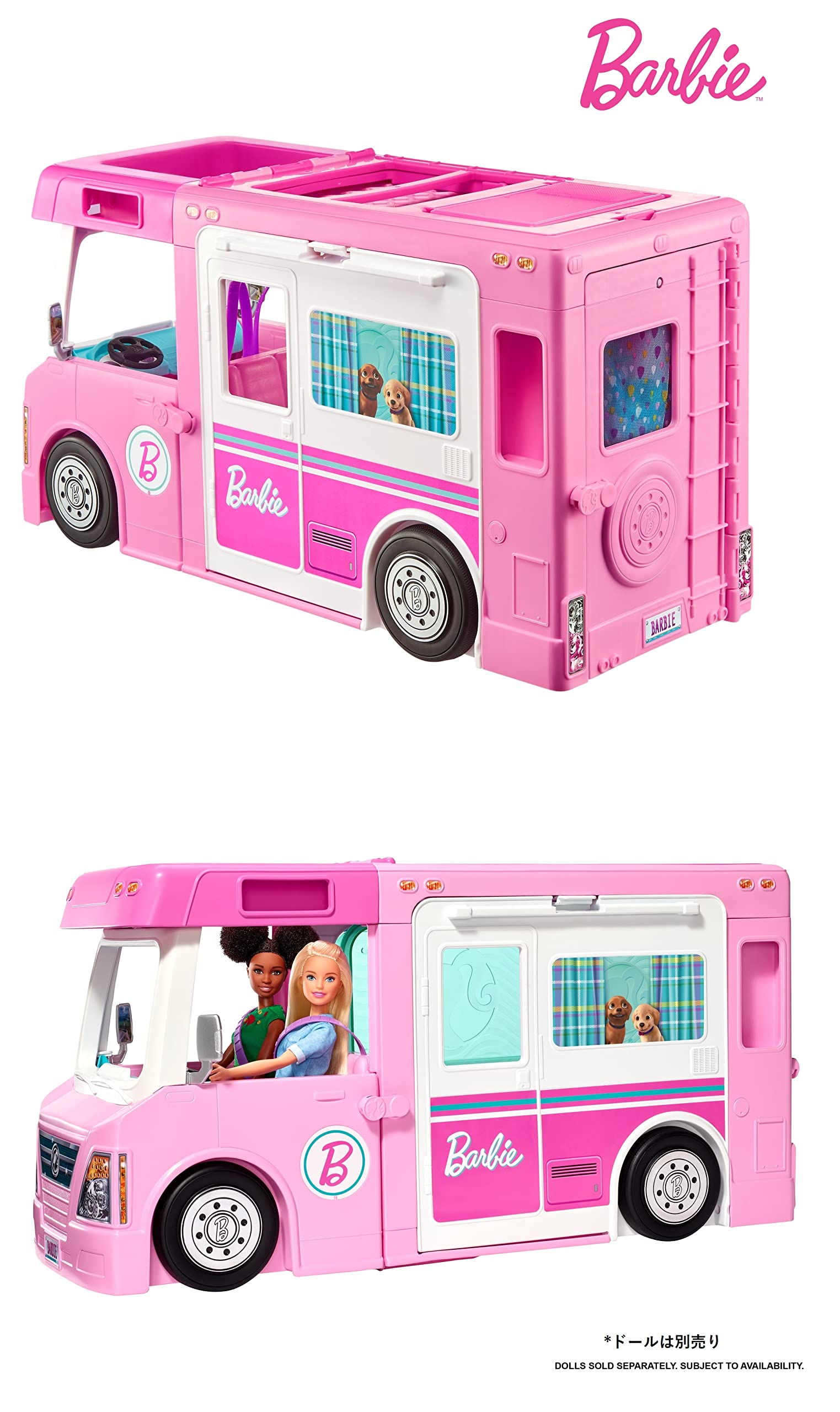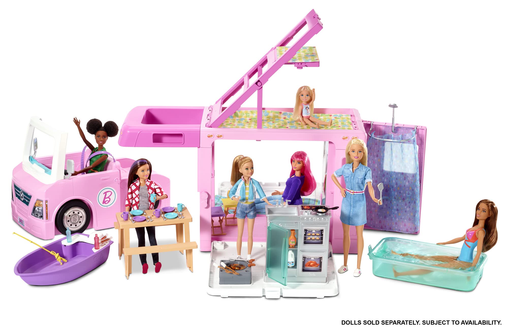 - Adventurers 3 to 7 years old can discover, explore and play out so many exciting travel stories with the Barbie 3-in-1 DreamCamper. Add even more variety to storytelling with Barbie dolls and accessories (each sold separately, subject to availability).