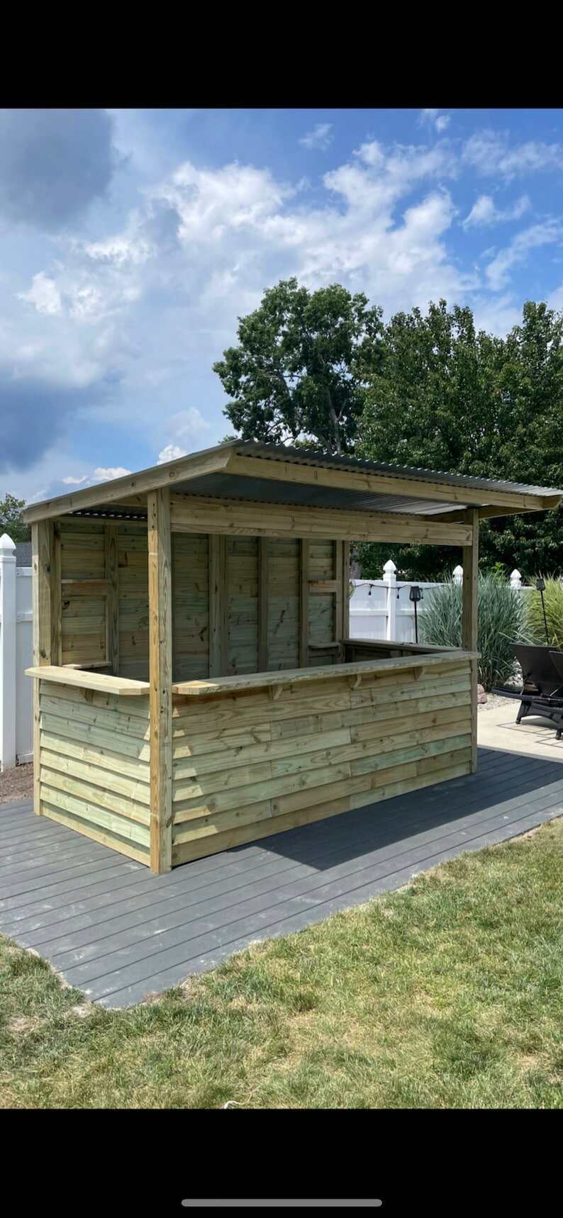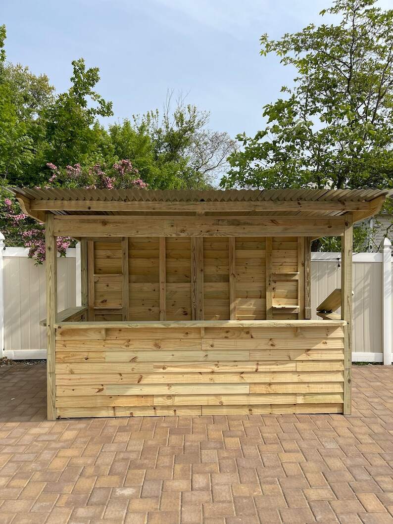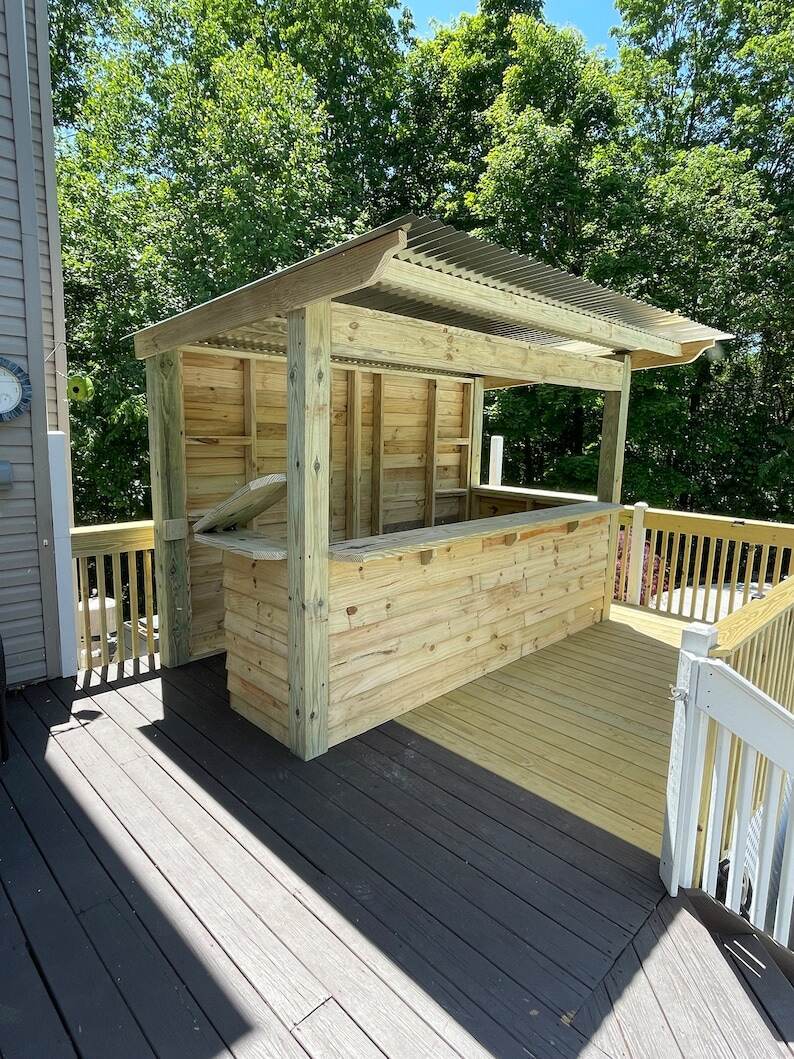 All bars are made with quality Pressure Treated Lumber and corugated roofing, ensuring durability to last any weather.