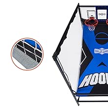 - ACTIVE PLAY & EASY STORAGE: This arcade basketball game has a heavy-duty 600D Oxford Cloth ball return, a pair of 15u201d steel rims, and for easy transportation and storage the back legs of this game have lockable casters with 3u201d oversized wheels.