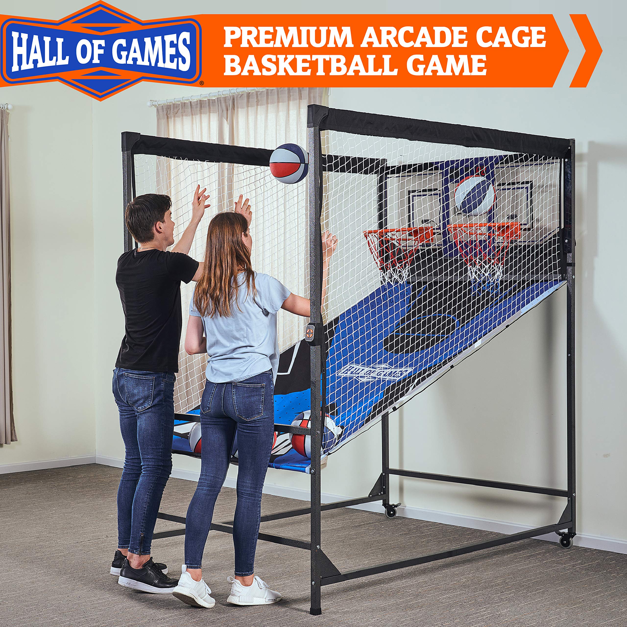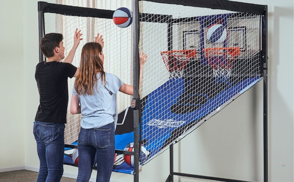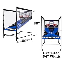 - EXTRA WIDE 2-PLAYER ACTION: This arcade basketball game with infrared digital scoring has a durable 1-1/4u201d steel frame that supports 88u201d tall ball return side nets and an extra wide 54u201d playfield for more room when playing head-to-head basketball.