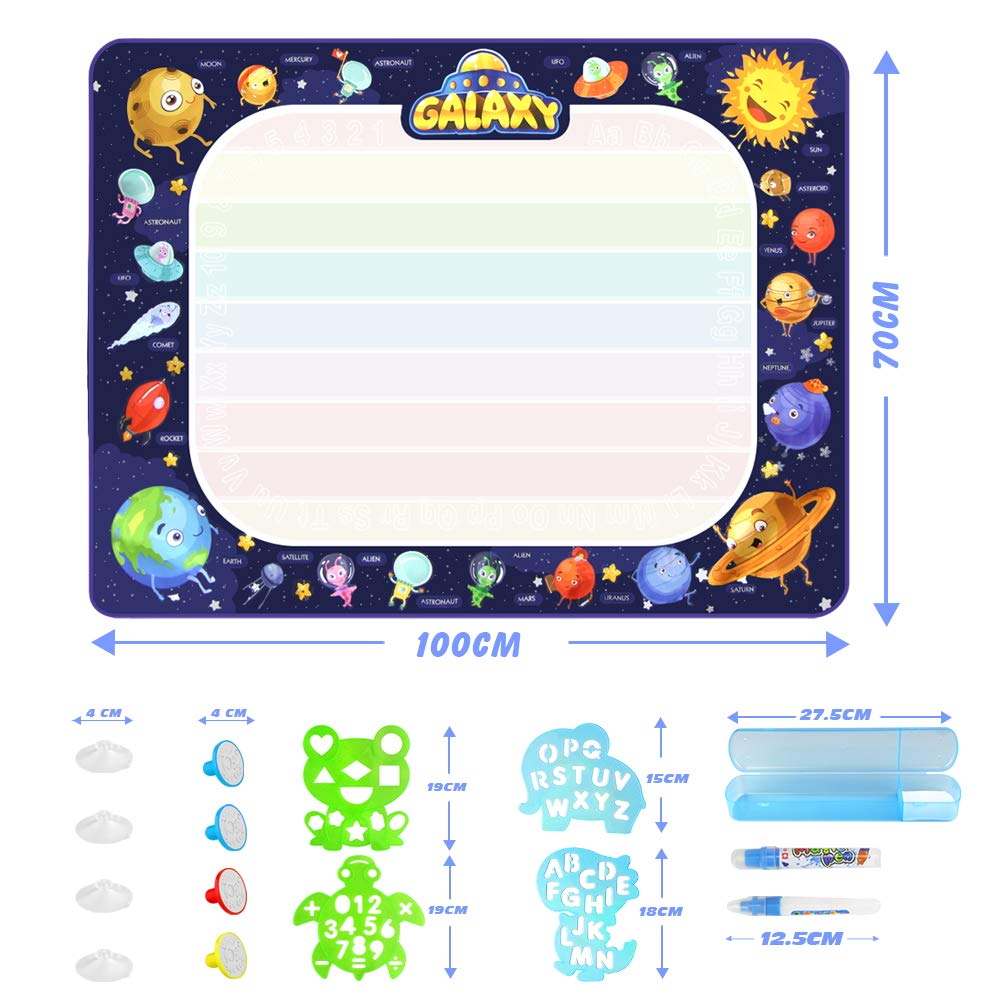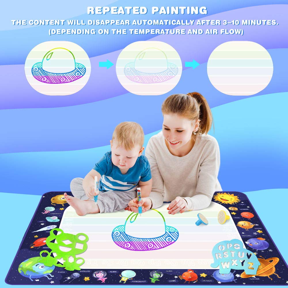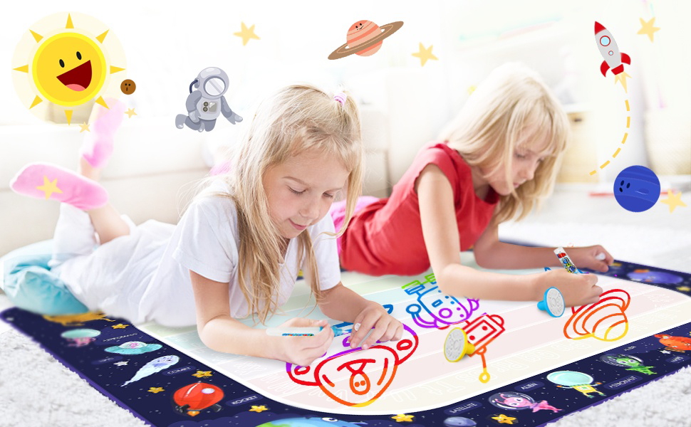 - Water Doodle Drawing Mat: Extra Large Size and Creative Design, Planets and Space theme, color bright and lively, attracting children's attention. Kids can know the Planet from painting and playing.
