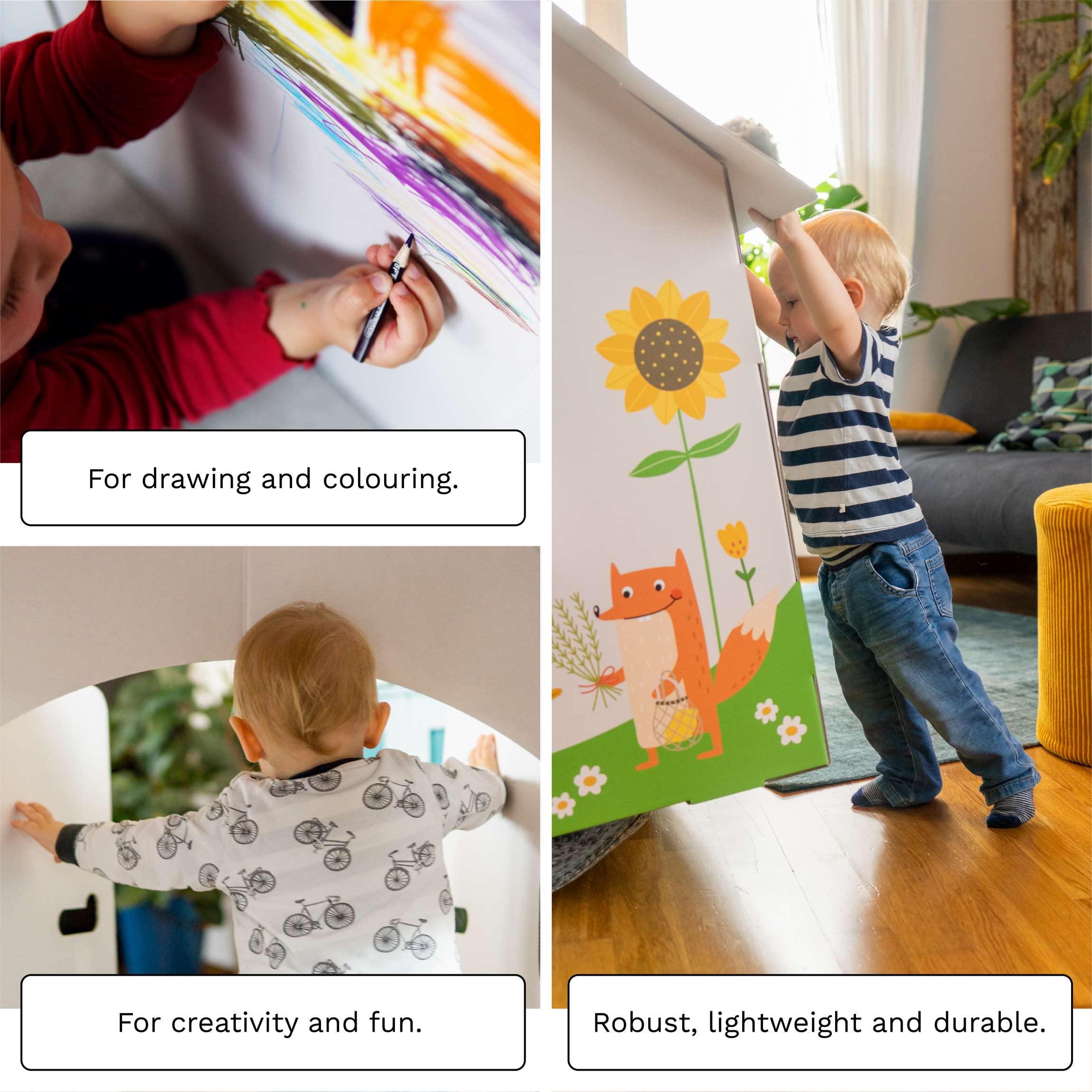 - Fun and play: Our playhouses foster creativity and invite you on exiting adventures. You can choose from 3 different types u2013 with print, with outline-print for colouring and without any print for your very own drawings and designs