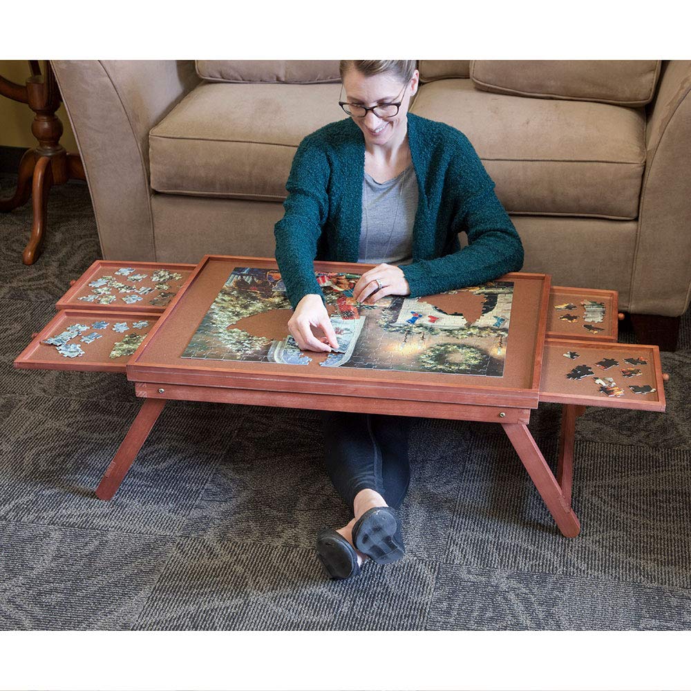 - Puzzle Storage: The puzzle plateau lounger features 4 wooden reinforced sliding drawers to sort and hold your pieces, a smooth fiberboard work surface and a raised edge to keep the puzzle pieces from sliding off.