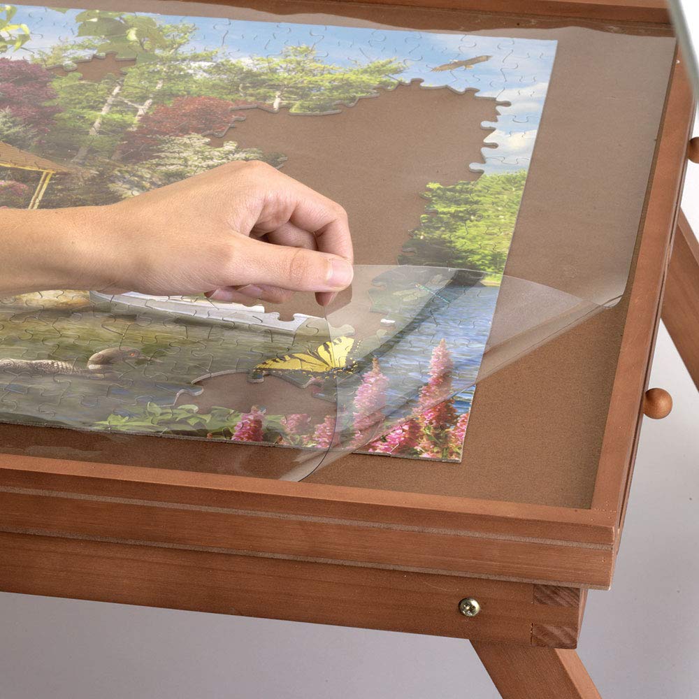 - Jigsaw Puzzle Table with Extendable Legs: This puzzle board table has extendable legs that lift the puzzling surface up, allowing you to sit and puzzle at the perfect height. It also includes a heavy acetate cover to protect your puzzles in progress.