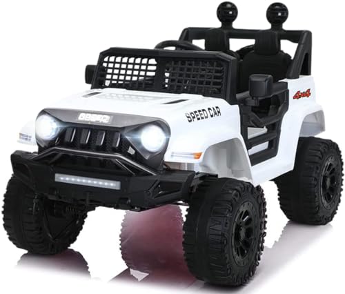 - ud83cudf81PERFECT DESIGNED-- Equipped with parental remote control,lockable open doors,safety belts,wear resistant wheels,large resistant wheels,LED lights,racing foot brake will make your kids feel real driving experience