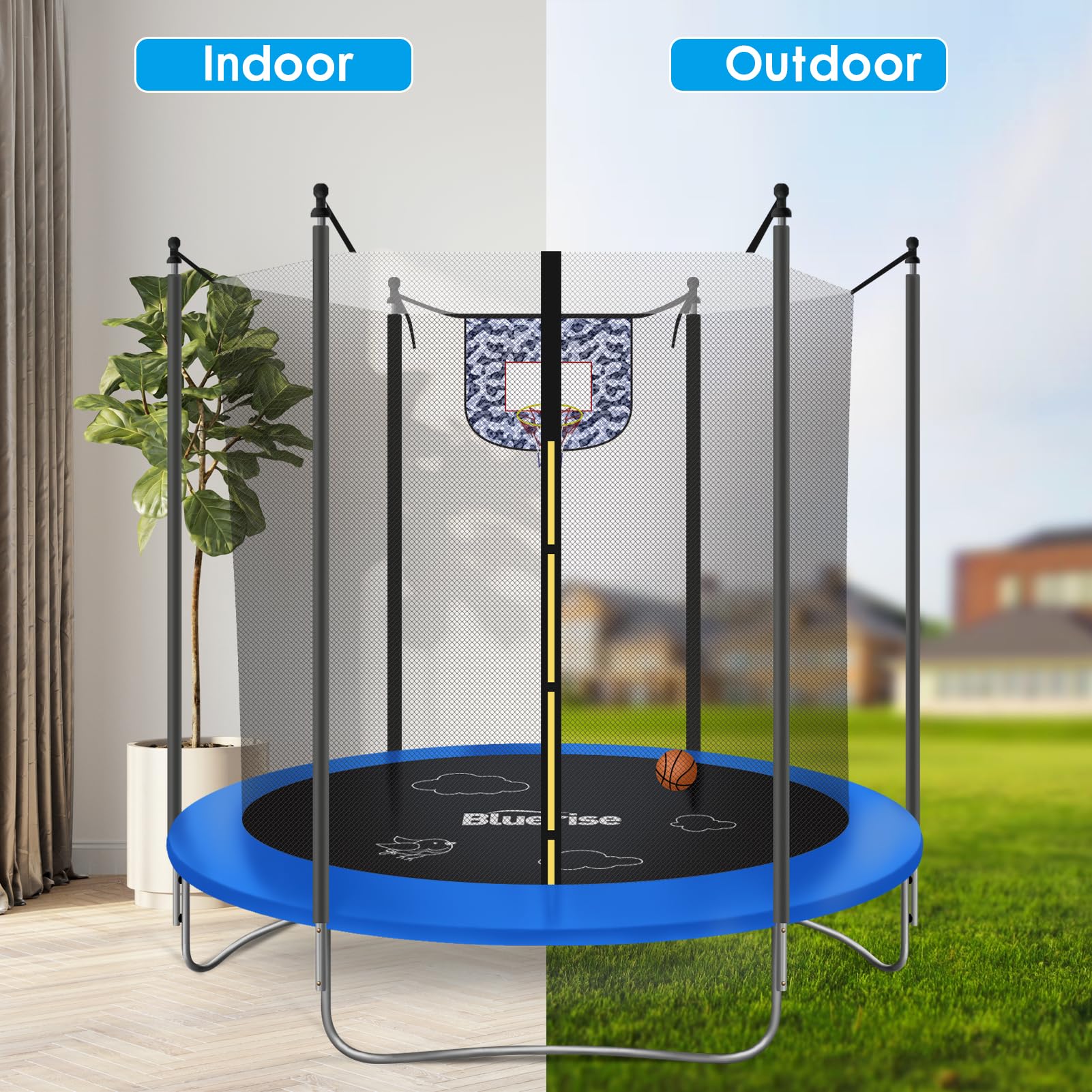 BLUERISE Trampoline Basketball Attachment Recreational