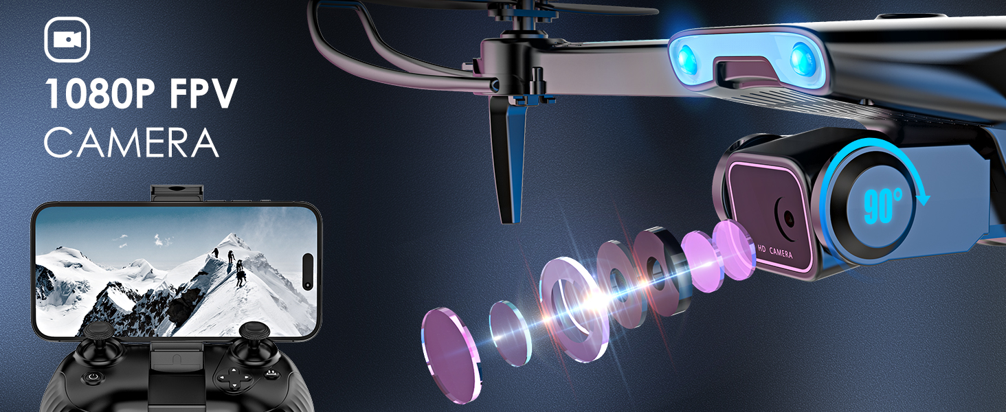 • Real-Time Image Transmission: This FPV drone comes with a high-definition 1080P camera, capable of capturing high-quality, high-framerate photos and videos, allowing you to capture exciting moments. The adjustable angle lens enables full coverage of shooting angles. Wi-Fi real-time transmission allows you to quickly share joyful moments with your family.