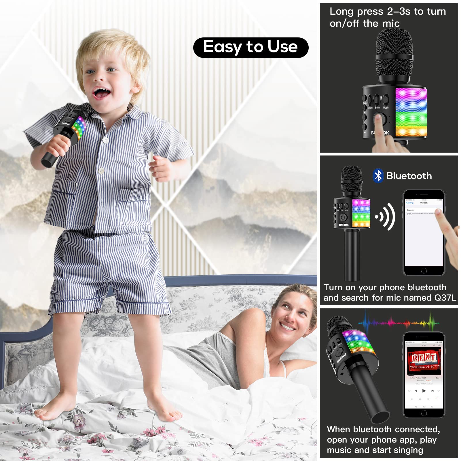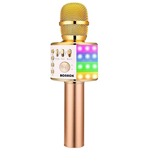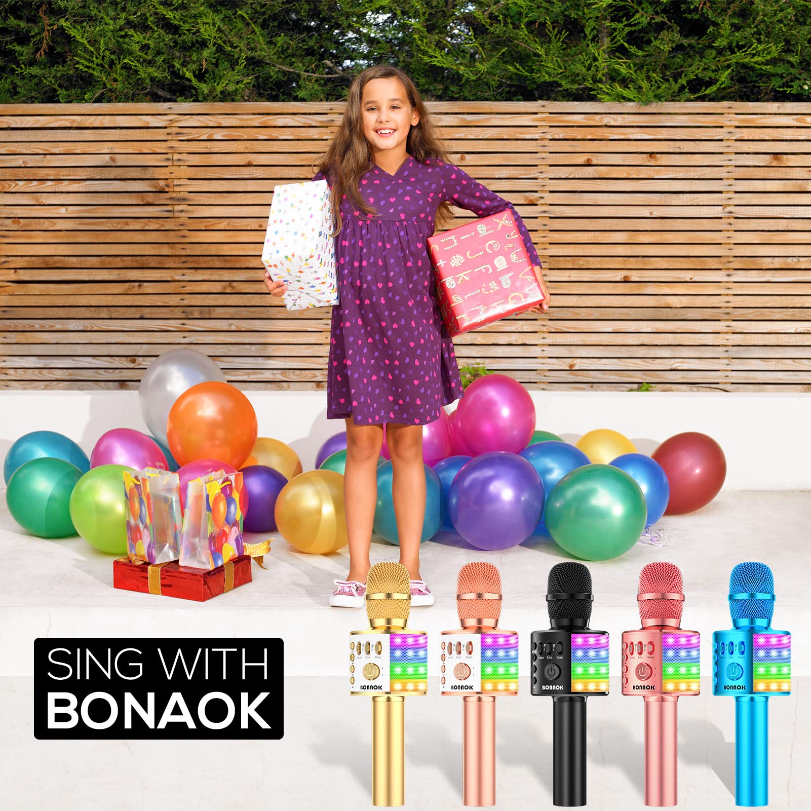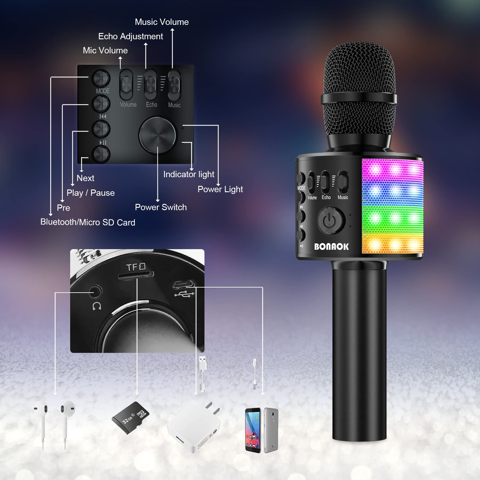 - u3010What You Getu3011- 1* BONAOK Fun karaoke microphone, 1* 3.5 mm Audio Cable, 1*USB Charge Cable, 1*Foam Wind Screen, 1*User Manual, 1*Colorful Gift Case. A high-quality stocking gift for 3 4 5 6 7 8 9 10+year old girls boys teens, light up Birthday Party, Christmas, Easter, Valentine, Thanksgiving, New Year.