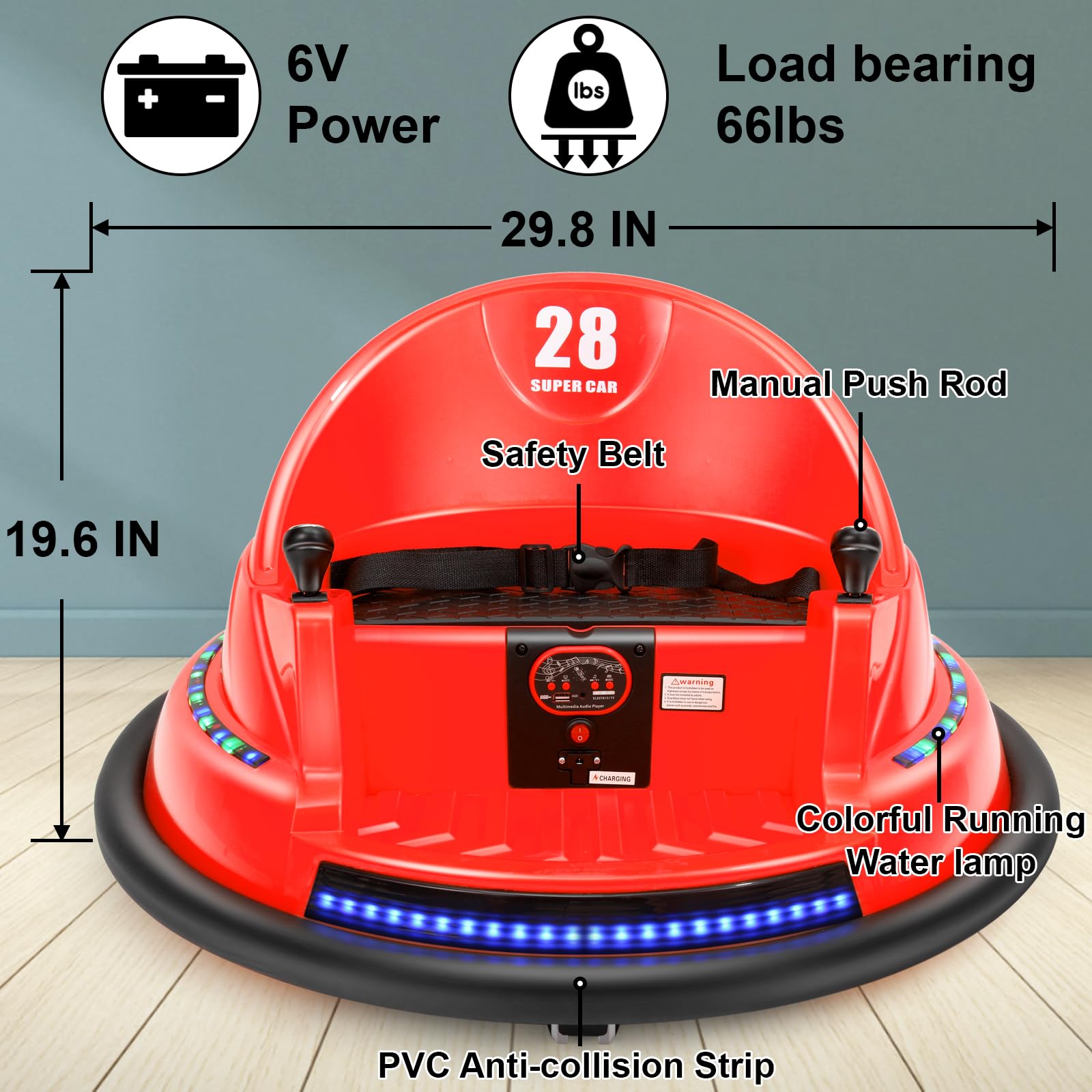 - Amazing bumper car - With simplified joystick controls and a max speed of 0.75mph this 6v electric spinning car is a great introduction to the world of kids electric cars.