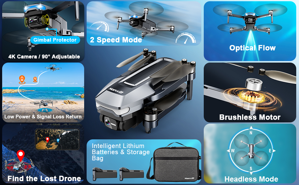 - u3010Brushless Motor for More Stable Flightu3011: Adopted with brushless motors, our drones with camera for adults 4K gain strong wind resistance capabilities of level 7, which will be more stable in flight when they are in strong wind conditions compared to brushed drones. The built-in altitude hold system allows the RC quadcopters to stay stable at the desired height.
