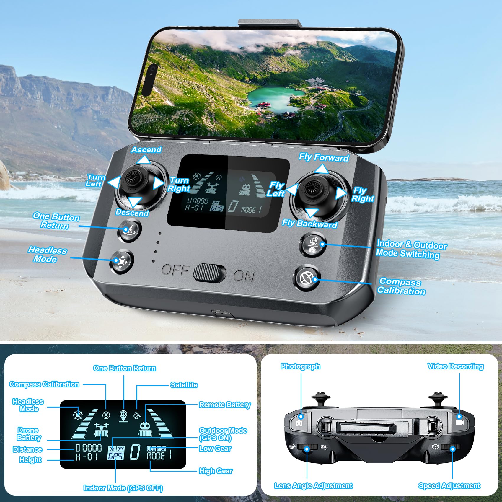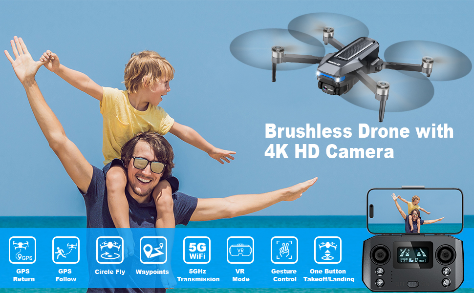 - u3010Brushless Motor for More Stable Flightu3011: Adopted with brushless motors, our drones with camera for adults 4K gain strong wind resistance capabilities of level 7, which will be more stable in flight when they are in strong wind conditions compared to brushed drones. The built-in altitude hold system allows the RC quadcopters to stay stable at the desired height.