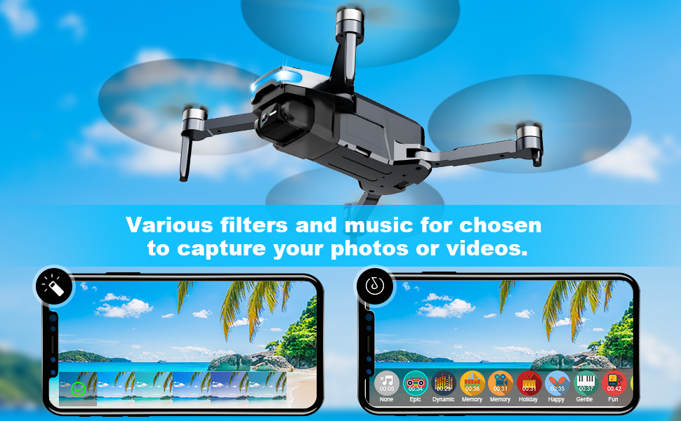 - u3010GPS Drone Intelligent Flightu3011: Supports GPS follow me, waypoint flight, point of interest flight, GPS auto return, and gesture control. For gesture control, post a V sign in front of the camera to take photos, or stretch out your palm in front of the camera, the drone can automatically take video, good for selfies. Just press one button to return, 4K drone will return automatically whenever the battery is low, the signal is lost or it flies out of range. Never lose your RC drone.