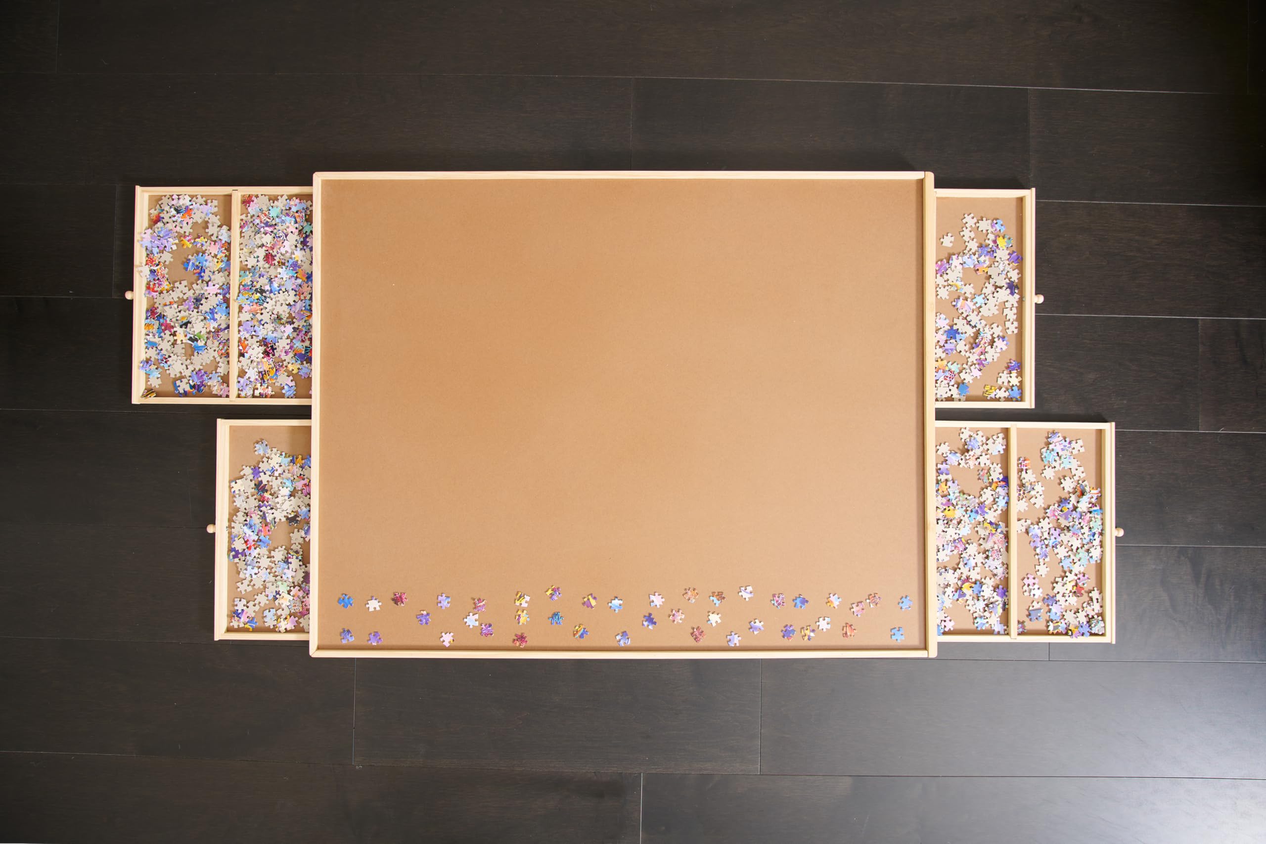 - Craftsmanship Meets Convenience: Experience the perfect blend of artisanal wood craftsmanship and practicality with our adult jigsaw puzzle table.