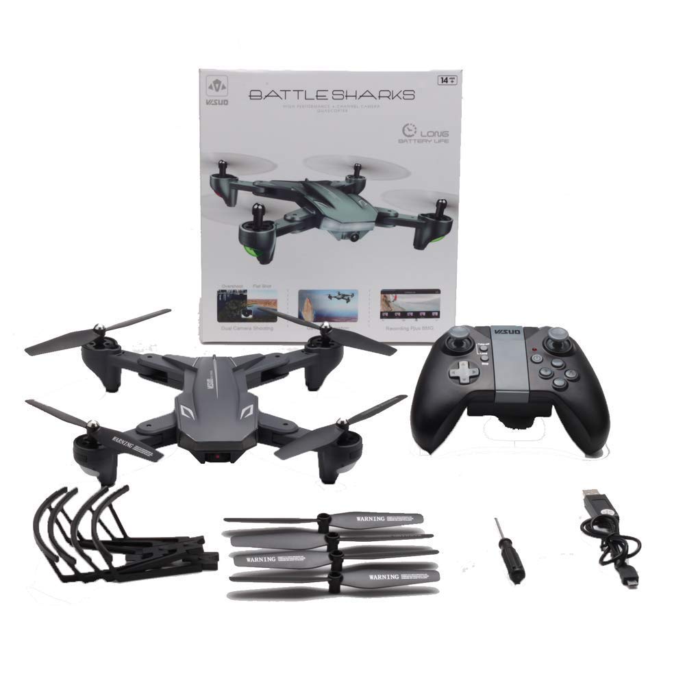 - FOLDING SHARK DESIGN DRONE:This visuo xs816 drone has the cool shark shape, the drone is designed to be portable, and the quadcopter features a foldable arm design, this drone is easy to carry drones without any trouble.