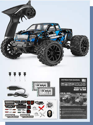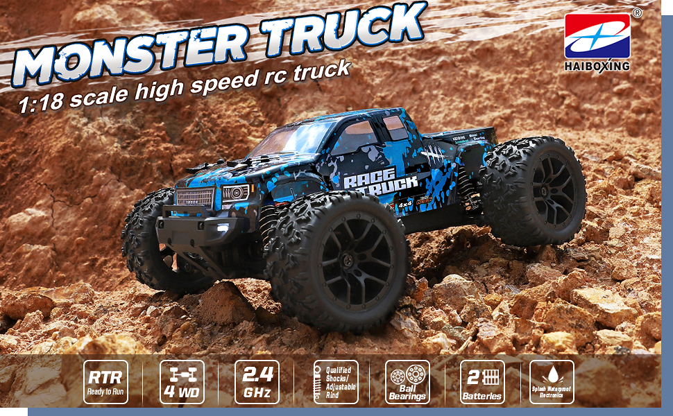 - Fast 1:18 Monster Truck: Powered by RC380 race motor, it makes best use of power to run speeding up to 36KM/H. Rampage truck is perfect for running on sands, on the grass, on roads, and off road surfaces.