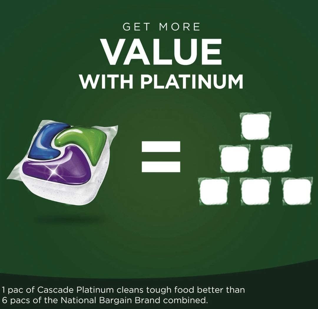 Cascade Platinum Dishwasher Pods, Dishwasher Detergent, Dishwasher Pod, Dishwasher Soap Pod, Actionpacs Dish Washing Pod, Lemon, 62 Count Dishwasher Detergent Pods