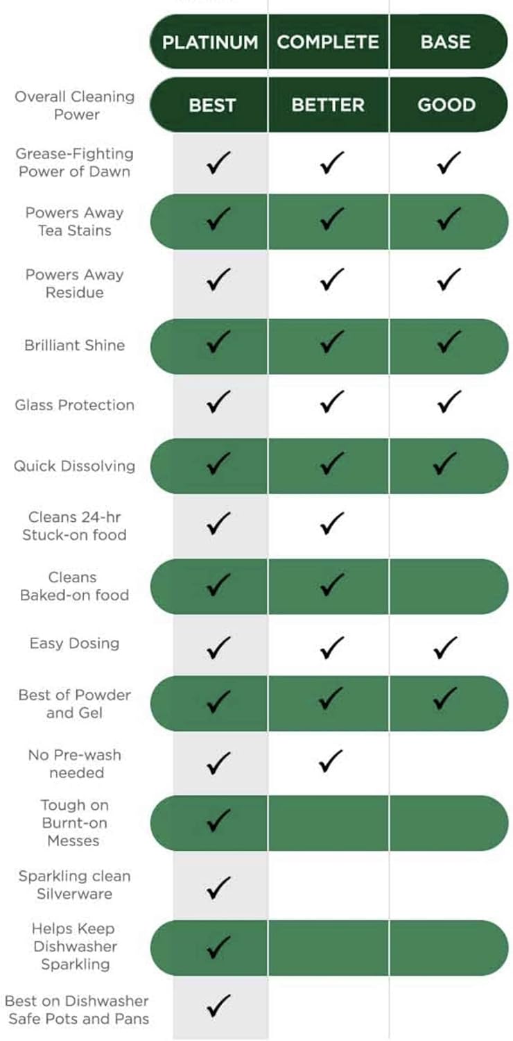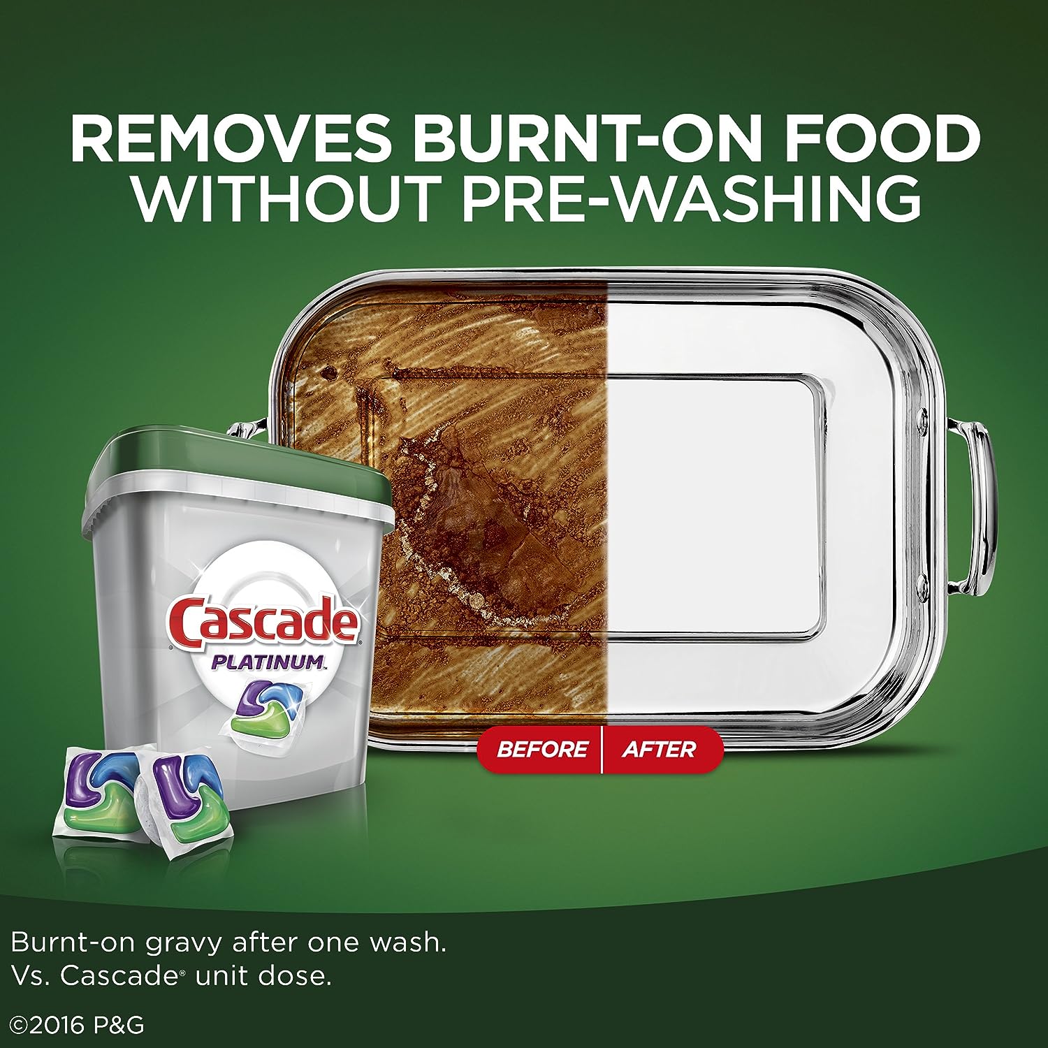 - Cascade Platinum ActionPacs dishwasher detergent cleans burnt-on messes in just one wash, with no pre-wash needed.