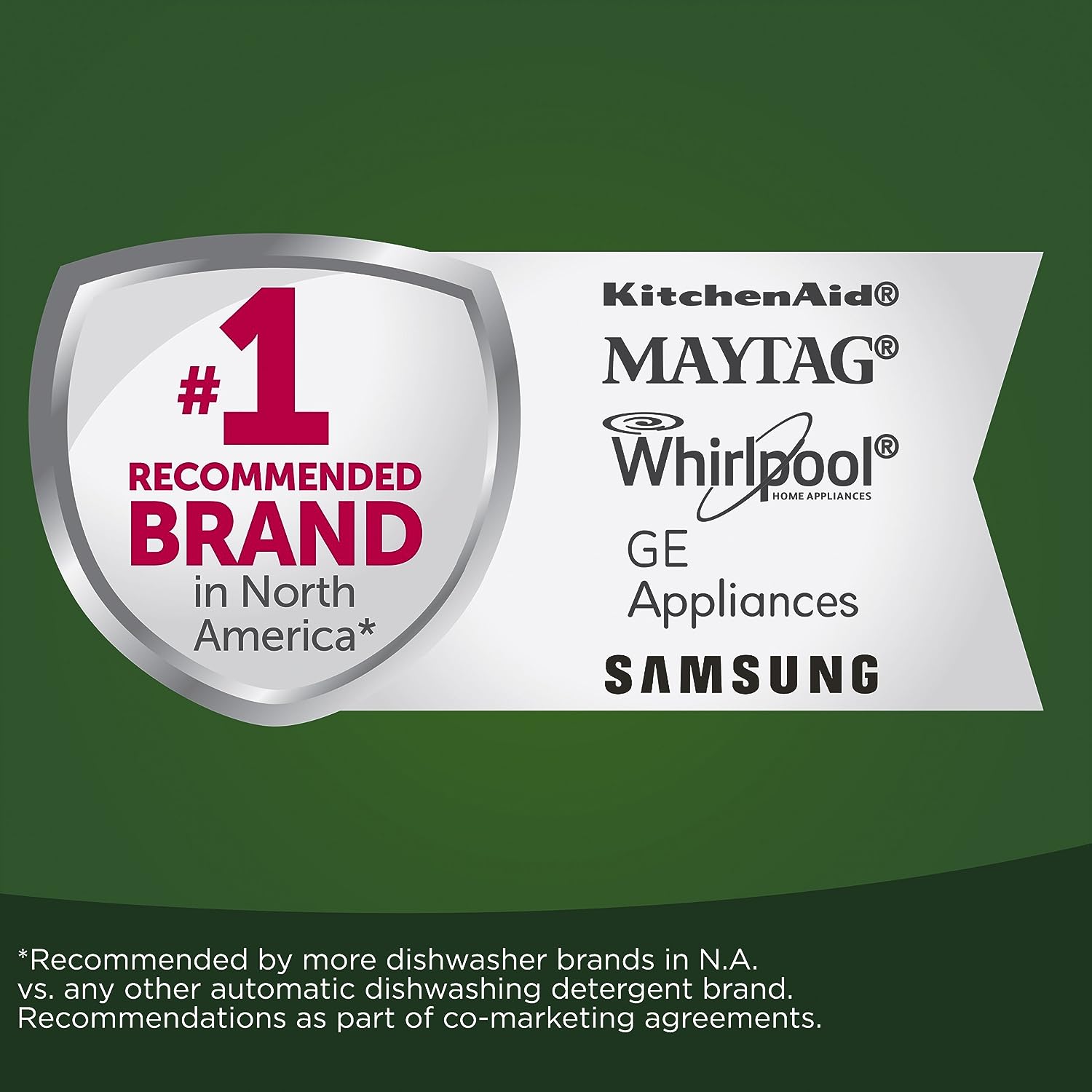 - #1 Recommended Brand in North America* *More dishwasher brands in North America recommend Cascade based on co-marketing agreements vs. other automatic dishwasher detergent brands