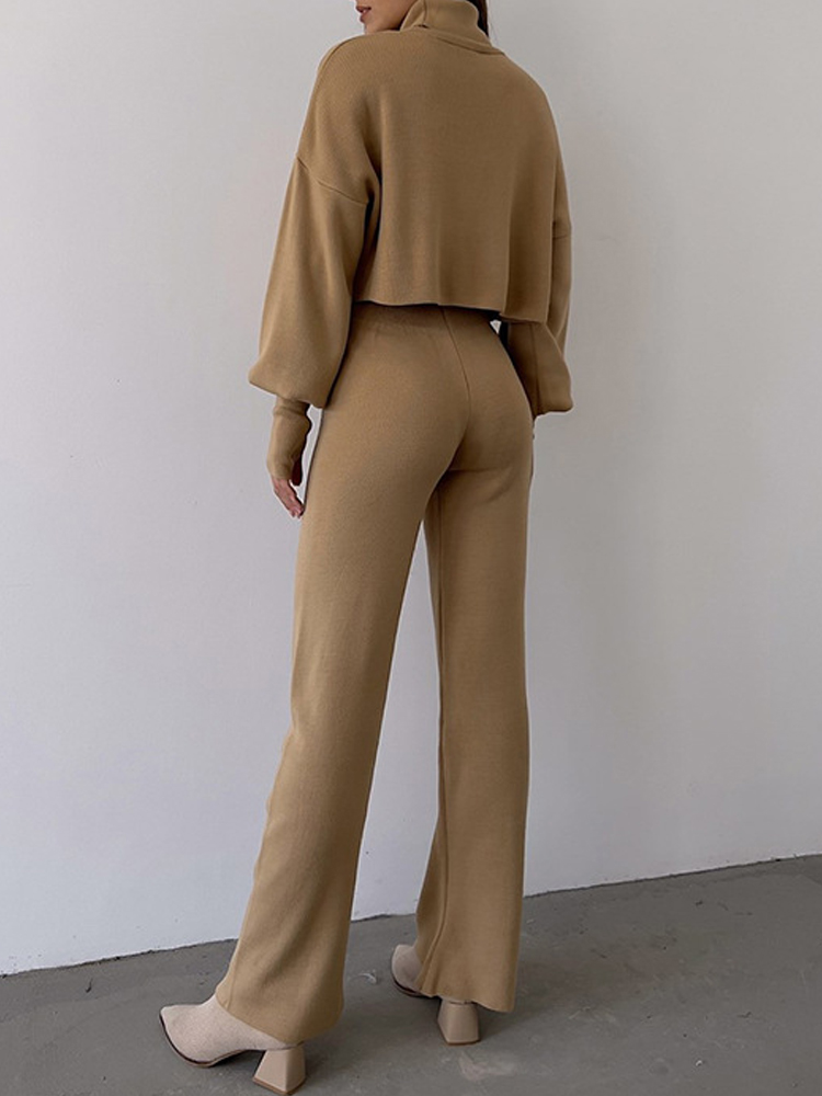 Casual Loose-fitting Long-sleeves Top and Pants Two-piece Set