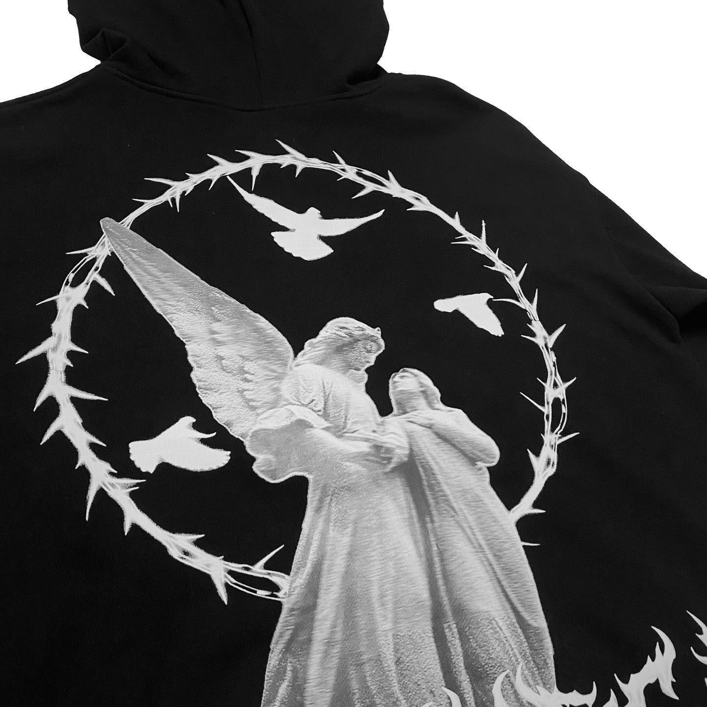 • Casual Vintage Angel Print Street Full Zip Hoodie