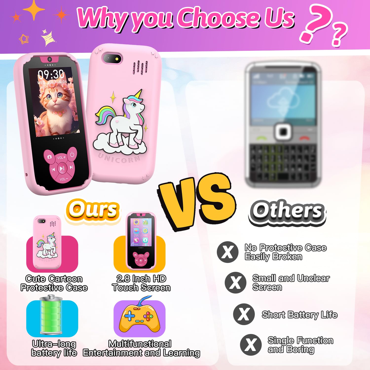 - u3010Perfect 2023 Christmas Gift Toy for Kids Boys Girlsu3011This cute unicorn cartoon kids toy phone is a great choose as a excellent birthday gift, christmas gift, new year gift or holiday gift for your children boys and girls age 3-12 years. and han 31 styles of wallpaper and 10 desktop background wallpapers to choose from. Built-in 15 styles of Lovely wallpapers can be choose and your children can DIY your wallpapers use your photo like Family, Pets, Landscape. It comes with Lovely appearance and exquisite packaging makes it become the the Best Christmas big surprise gift for your kids.