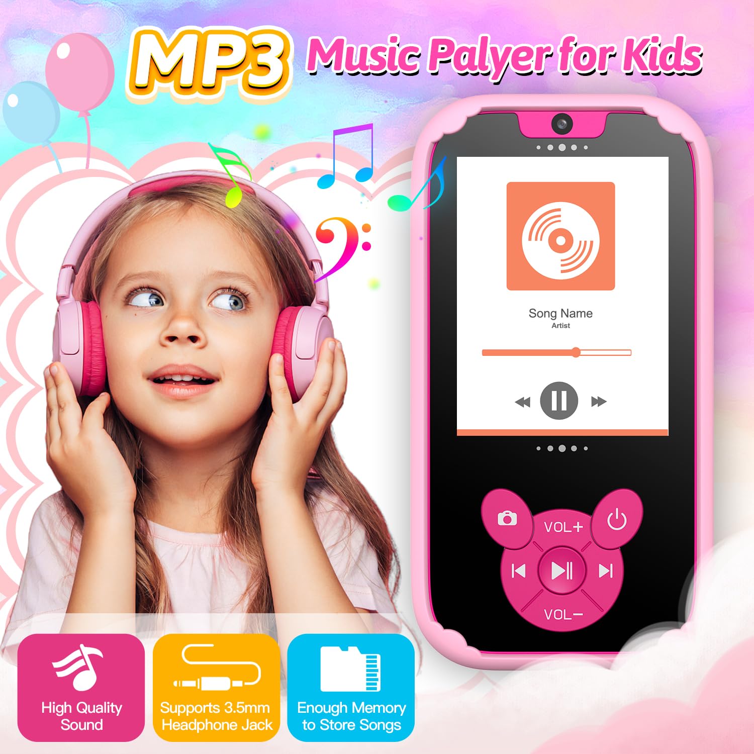 - u3010Longer Battery Life and Better Speaker Qualityu3011Equipped with a large capacity lithium battery, they can continuously take photos or play music for 8 hours. It Equipped with a USB Type-C cable, you can fully charge within 1 hour, kids toy phone support 3.5mm headphone jack and is equipped with high-quality speakers to provide a better sound quality experience, 8GB micro SD card, providing ample storage space for thousands of music.