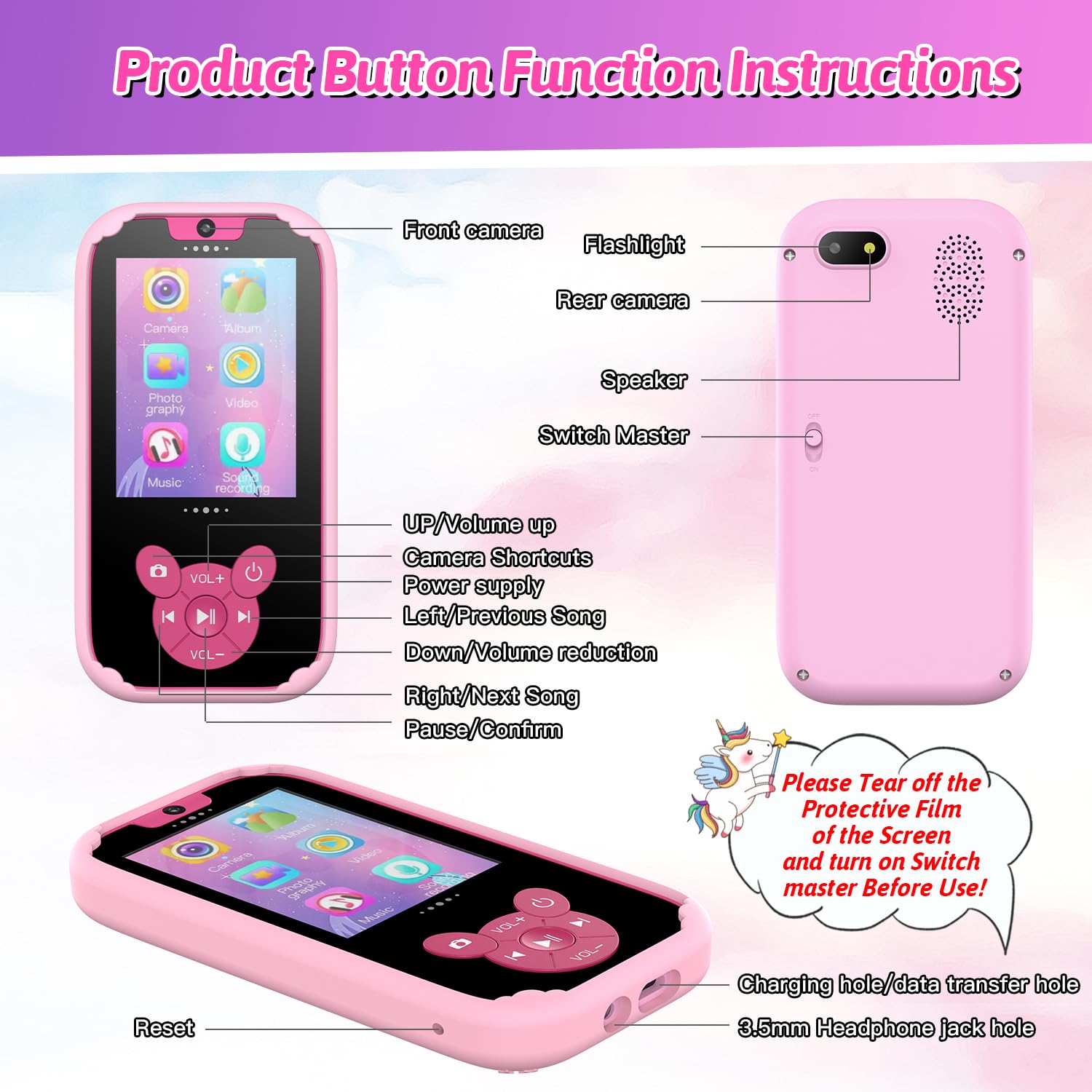 - u3010Why you Choose Our Productu3011It comes with: 1x Kids Toy Phone with Unicorn Cartoon Protective, 1x Exquisite packing box, 1x Type C USB Charging Cable, 1x Hanging Lanyard, 1x User manual. If you have any questions with our products or service, please contact us anytime, and we will provide you with perfect solutions as soon as possible, We're sure the child will have a blast.