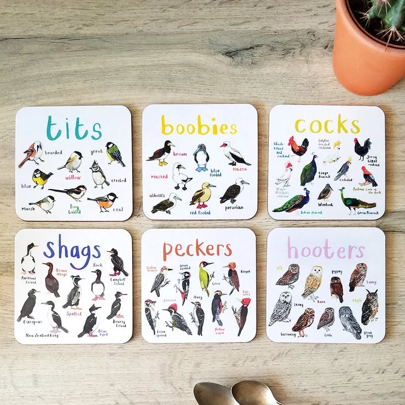 🐦A collection of 6 coasters, each featuring a different bird chart from the best-selling ‘For the Pun of It’ collection.