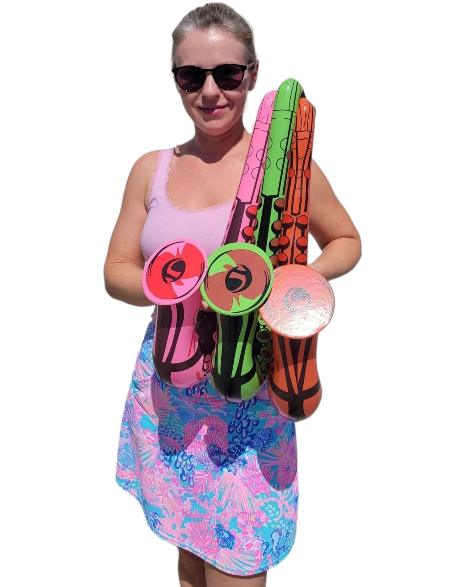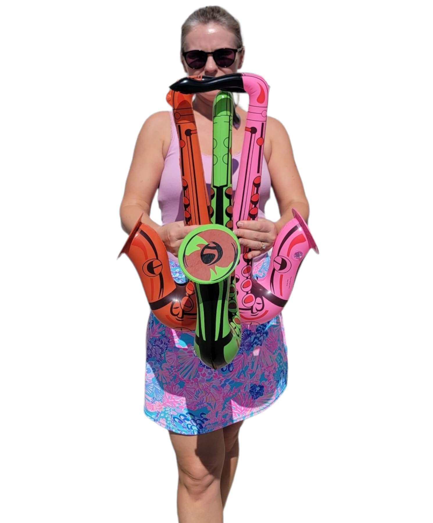 - Bring the joy of music to your celebrations with our 22" Saxophone Inflates! These inflatable saxophones are a delightful addition to any party, event, or musical-themed gathering. They Come in Pink, Green and Red! Buy they as mix or get a specific color!