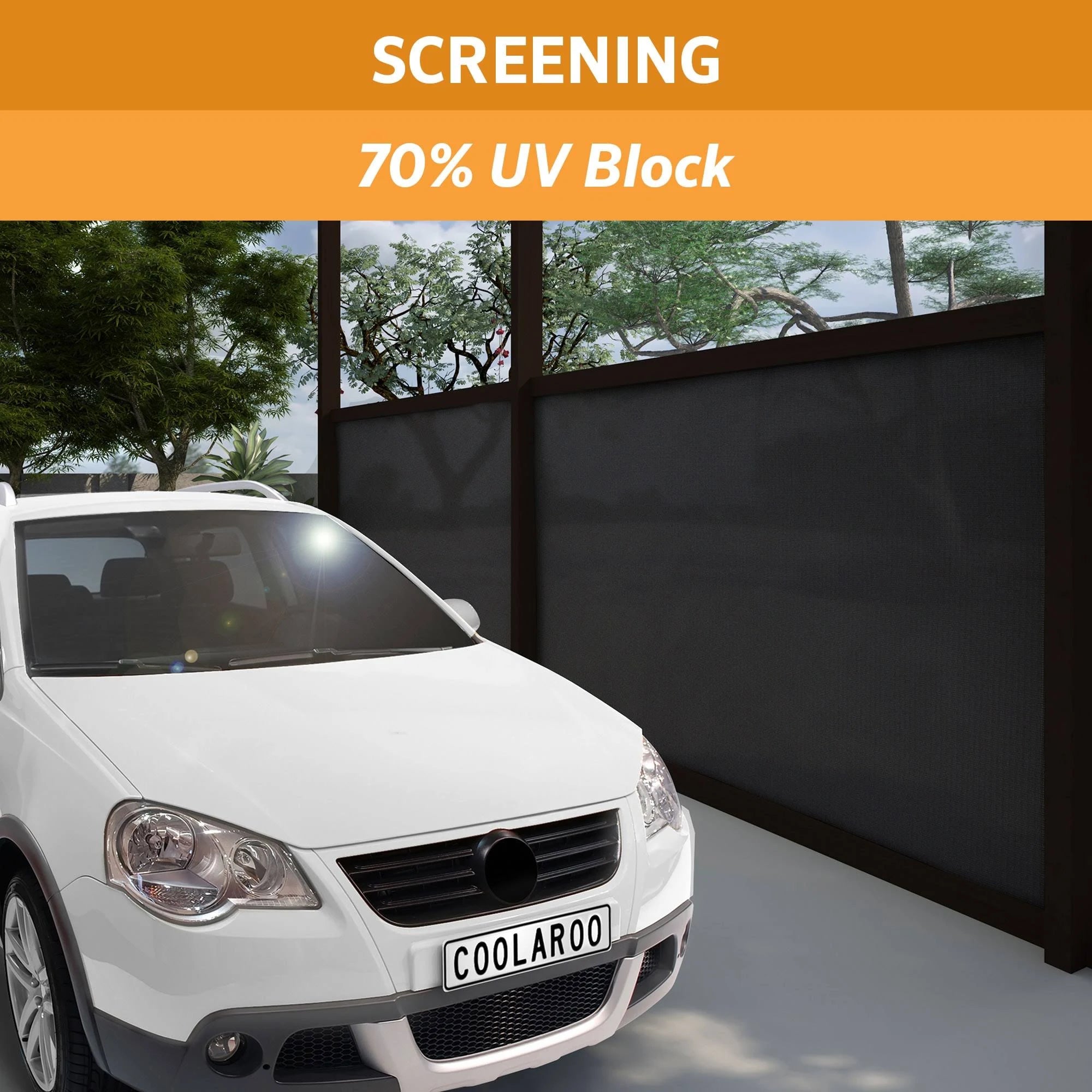 Shade Cloth by Coolaroo. Details:Description Experience enhanced privacy and unobstructed views with Coolaroo's Privacy Screen 70% UV Block Shade Fabric. Our unique privacy screen provides the perfect balance of seclusion and visibility, while offering protection from the sun and heat. Our signature breathable fabric promotes air circulation for a comfortable outdoor environment. Versatile and adaptable, this privacy screen is ideal for fence lining, balconies, carports, pergolas, wind block, and vehicle protection. The rolled form allows for easy customization, enabling effortless preparation and cutting to your desired size for convenient installation on any structure. Choose Coolaroo's Privacy Screen 70% UV Block Shade Fabric for the ultimate combination of privacy, protection, and eco-friendly design in your outdoor living spaces.