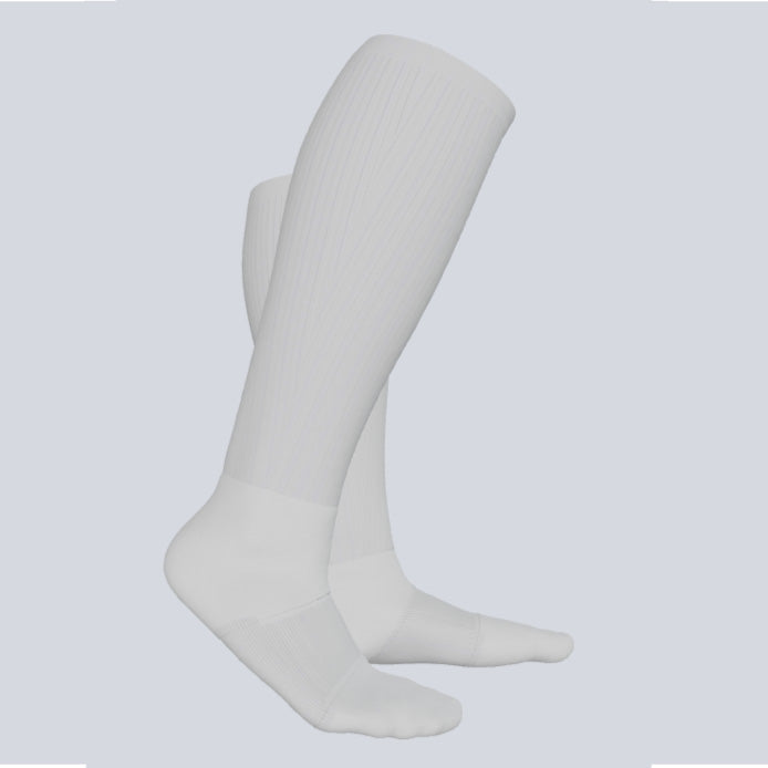 Leg Material: 95% Polyester, 5% Rubber/spandex, Sublimation ready. White inside and out.