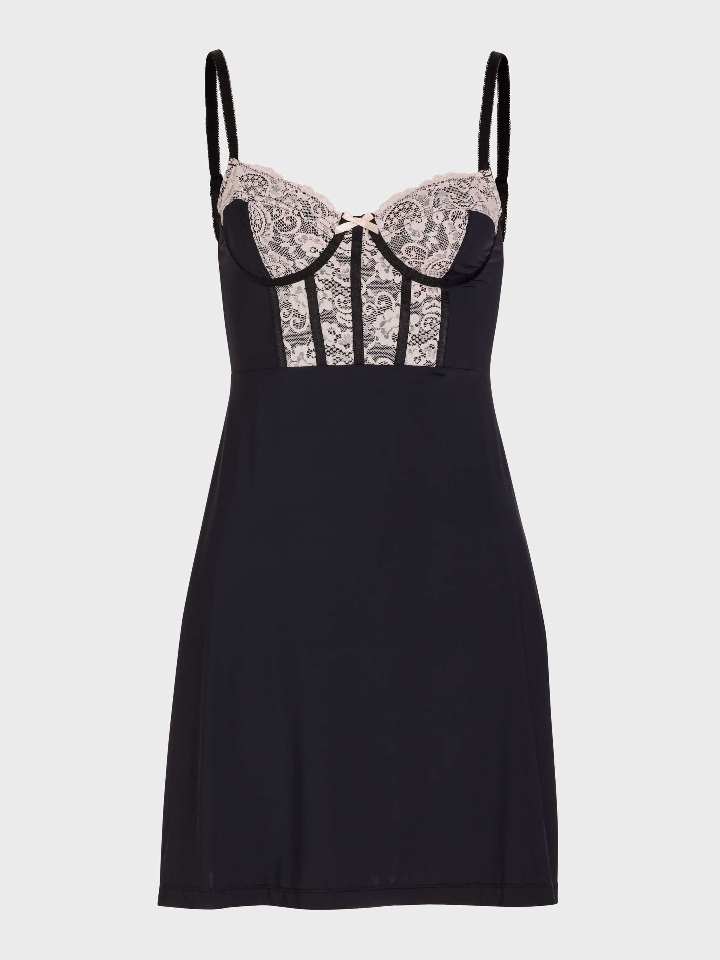 Have a night-ie of dreams in this black fashion slinky. The lace corset top and stretchy skirt combine to make an ultra comfy nightie that you're sure to love.?