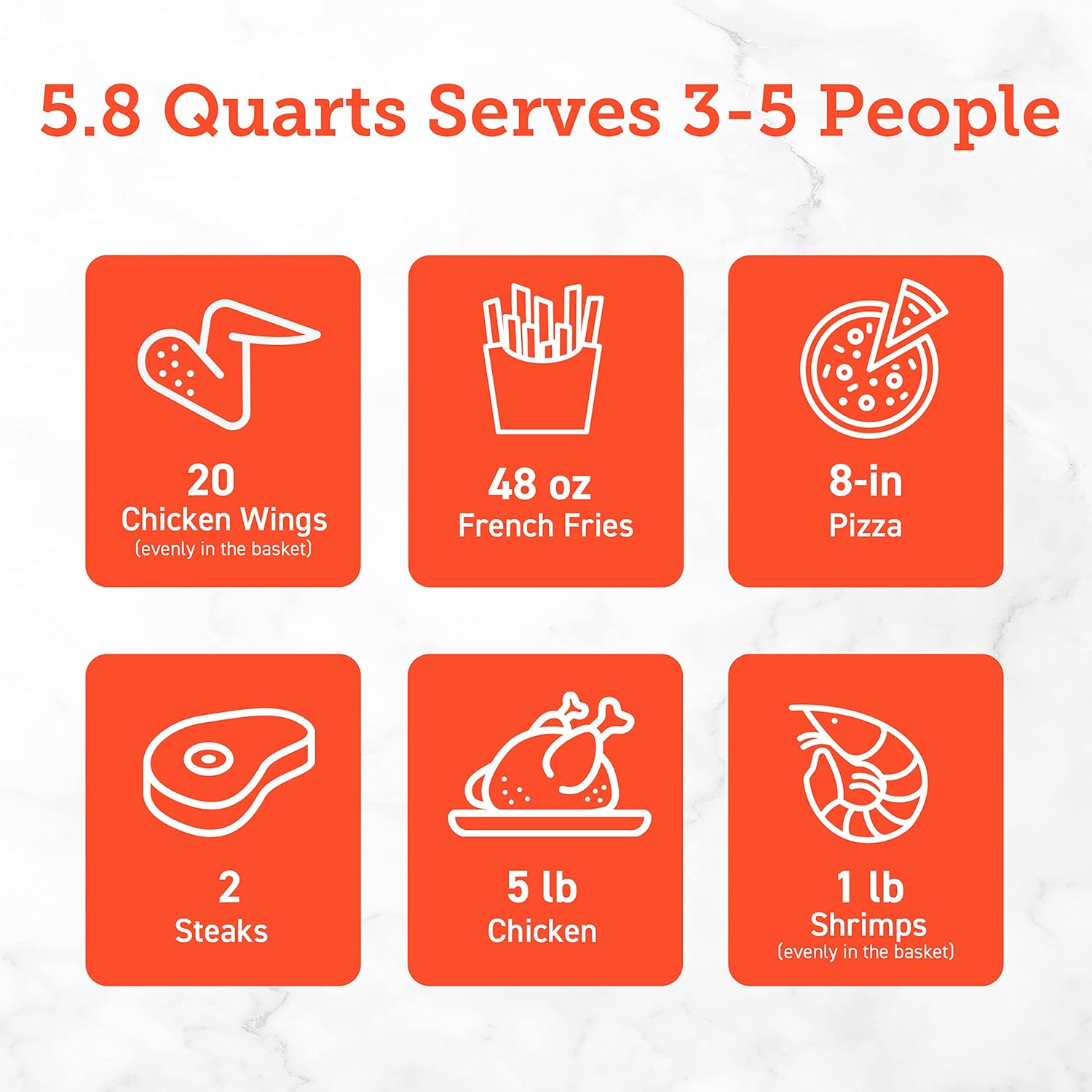 - SERVES 3–5 PEOPLE: The square 5.8-quart baskets can fit a whole 5 lb chicken, perfect for family dinners