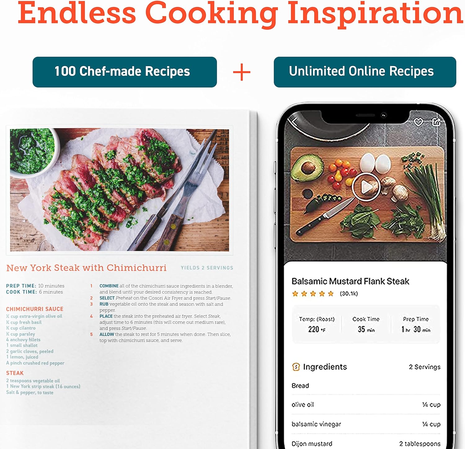 - COSORI COOKBOOK INCLUDED: Be inspired by delicious, chef-created recipes and browse 100 options in the recipe book