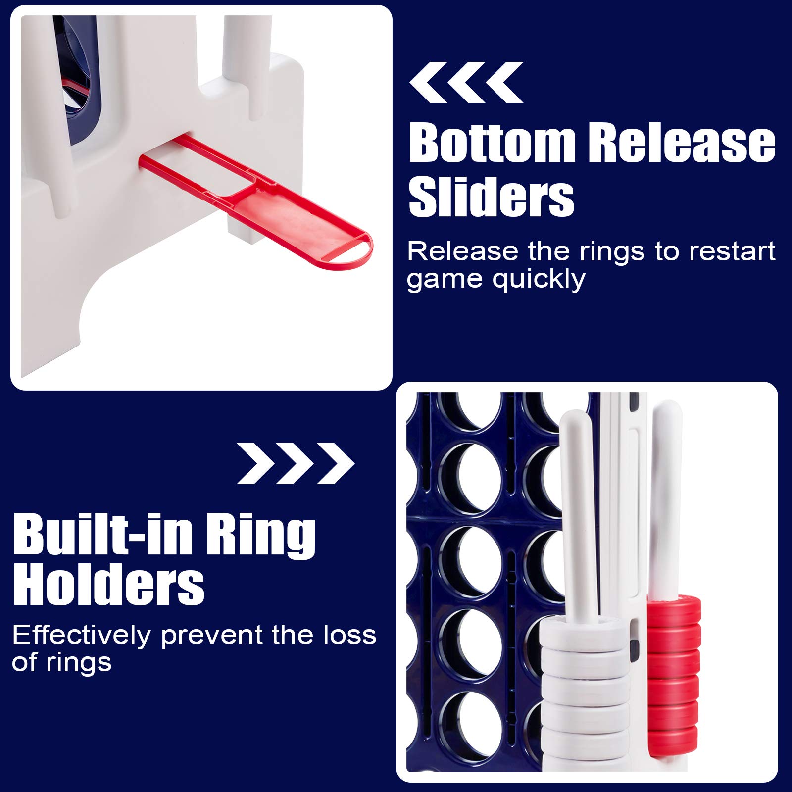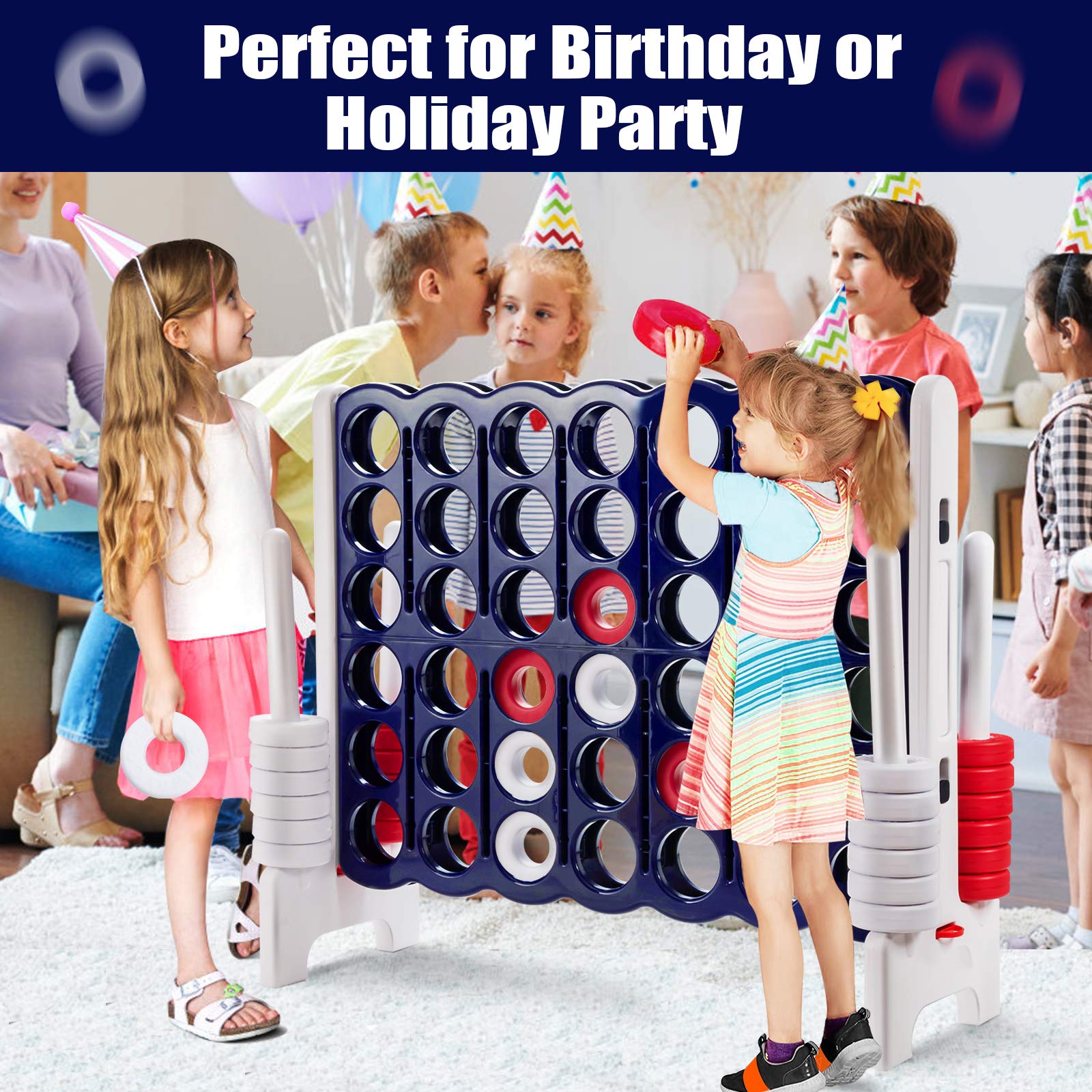 - ud83cudf81u3010Easy to Assemble & Cleanu3011: Our jumbo 4-to-score game can easily be set up or taken apart to take to your next party. You can do all the assembly in just a few minutes without using any other tools. In addition, the cleaning process is very easy and simple, occasionally wipe with a wet cloth.