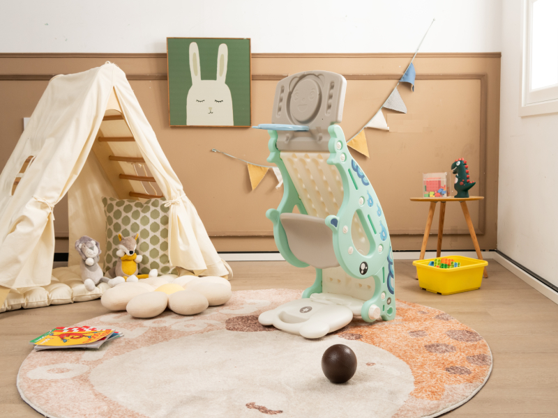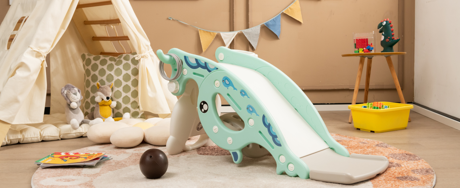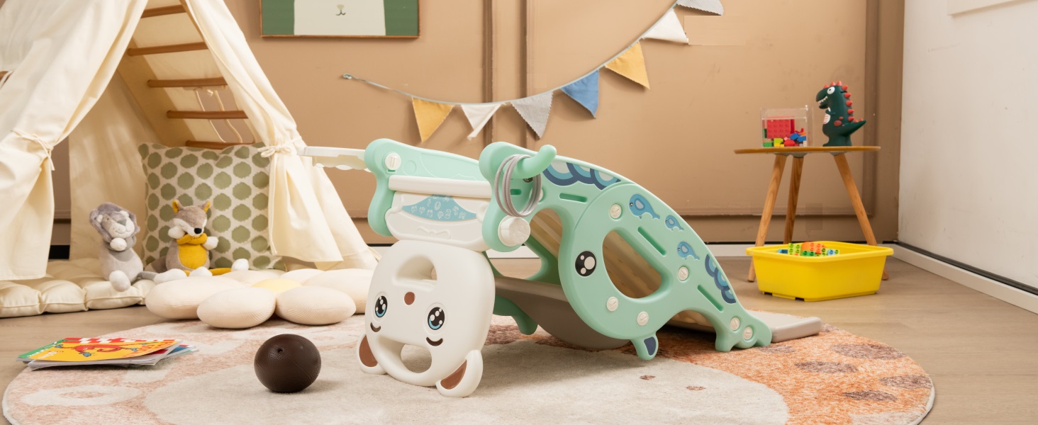 • u30104 In 1 Sliding and Rocking Designu3011 Combining baby rocking horse, sturdy slide, basketball hoop and ring game as one, it not only offers multiple ways of playing, but also trains your little oneu2019s the ability of throwing and the coordination of hands and feet. Costzon toddler slide rocking toy can be used indoors and outdoors and is the best gift for every little kids.