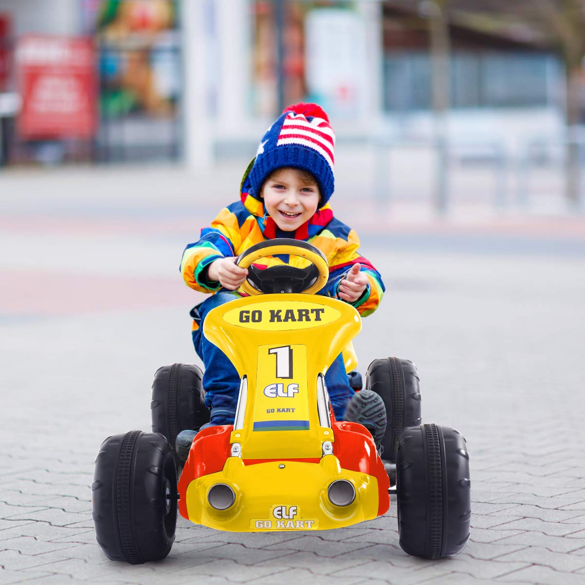 - u2728RIDE IT AT EASE: This Go-kart offers effortless operation with no gears or batteries that require charging which perfectly avoid much issue from battery, wire connection, etc. Your kids should ride it by themselves and they can have an exercise in the meantime to keep healthy.