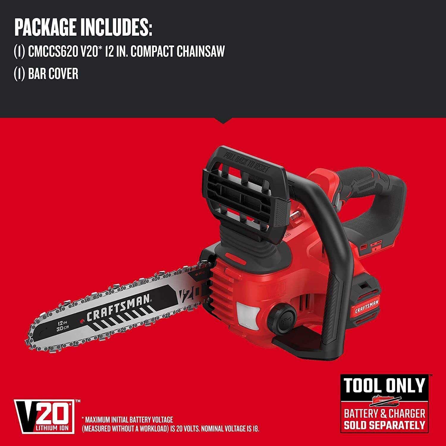 CRAFTSMAN V20* Cordless Chainsaw, 12-Inch (CMCCS620M1)