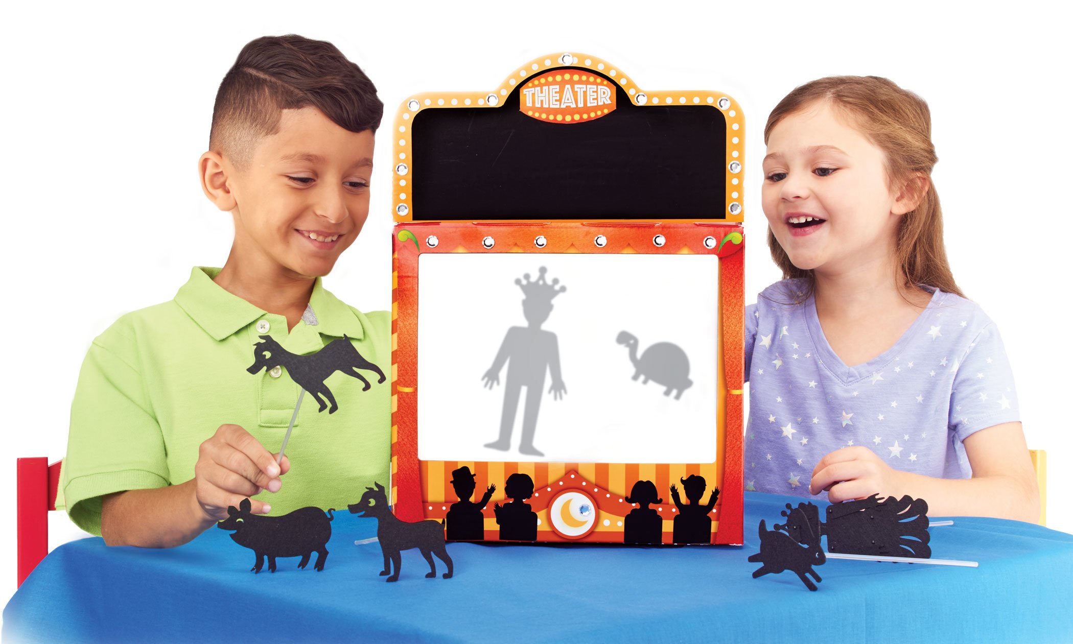 - TEACHES BENEFICIAL SKILLS - Inspire creativity, boost sensory skills and improve communication skills with imaginative play and storytelling. The Shadow Puppets Theater is a great group activity for ages 6 to 96.